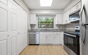 Experience the perfect blend of contemporary design and peaceful living in this impeccably transformed two-bedroom, one-bathroom garden-level haven. Nestled on a quiet, tree-lined street, this spacious unit has been completely remodeled from top to bottom to offer an unparalleled sanctuary for those seeking style and tranquility. Chef-Inspired Modern Kitchen The heart of this home is the stunning, fully renovated kitchen, designed for both functionality and aesthetic appeal. It features: Premium Stainless Steel Appliances: A refrigerator, an electric range/oven, a built-in microwave, and a multi-cycle dishwasher. Designer Finishes: Gleaming stone countertops and new cabinetry provide elegance and ample storage space. Gourmet Accents: High-quality executive chef sinks and modern fixtures elevate your daily culinary experience.