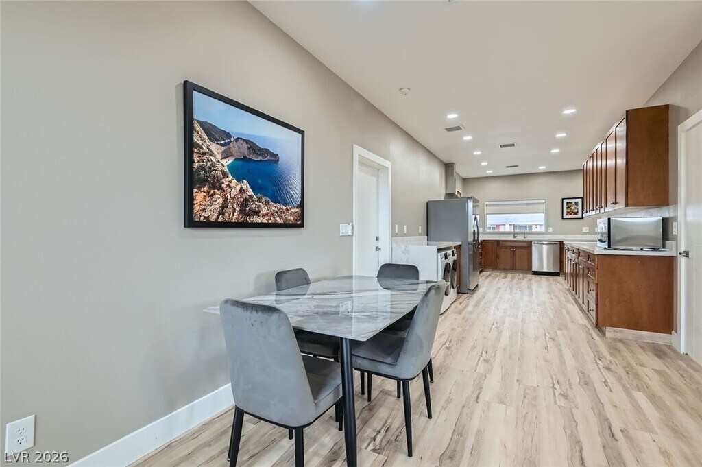 Brand New 2025 Charming Single Story in the heart of Spring Valley. Walk into this absolute completely furnished (brand new) home that boasts 2 bedrooms and 1.5 bath. To the left side is an open kitchen with sprawling quartz countertop and backsplash and custom cabinets, stainless steel Refrigerator, Range, Oven, Dishwasher, Washer and Dryer and fully equipped with kitchen essentials. There is an open layout combined living & dining area with a sliding glass door that leads you to the covered patio set on pavers in the backyard. To the left side of the house are the primary and secondary bedroom and a full bathroom with a huge walk in shower with rainhead shower and a floating bathroom sink set on top of a modern vanity. Living Room and Both Bedrooms have ceiling fans. The living room has smart TV and the sofa is equipped with cellular charger. All utilities - power, water, gas, sewer, trash and internet are ALL INCLUDED in RENT. Flexible Lease Terms Available!
