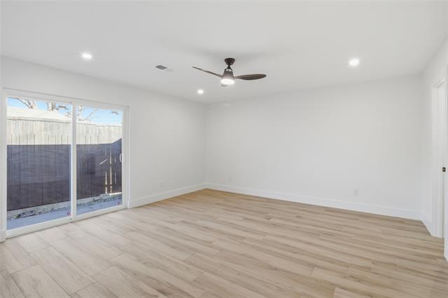 Completely renovated in February 2026, this 3-bedroom, 2-bath Preston Hollow home is brand new and move-in ready. The open-concept layout features a spacious living area with a wood-burning fireplace and a stunning brand new kitchen with quartz countertops, large island, stainless steel appliances, and abundant cabinetry. New hardwood floors, fresh custom paint, contemporary baths, and modern finishes throughout. The primary suite includes walk-in closet, updated en-suite bath, and access to an enclosed private patio. The secondary bedroom with skylight is perfect for a home office or guest suite. Complete with a full-size laundry room and rear-entry attached two-car garage. Showings available daily by appointment. Contact listing agent directly to schedule a private tour.