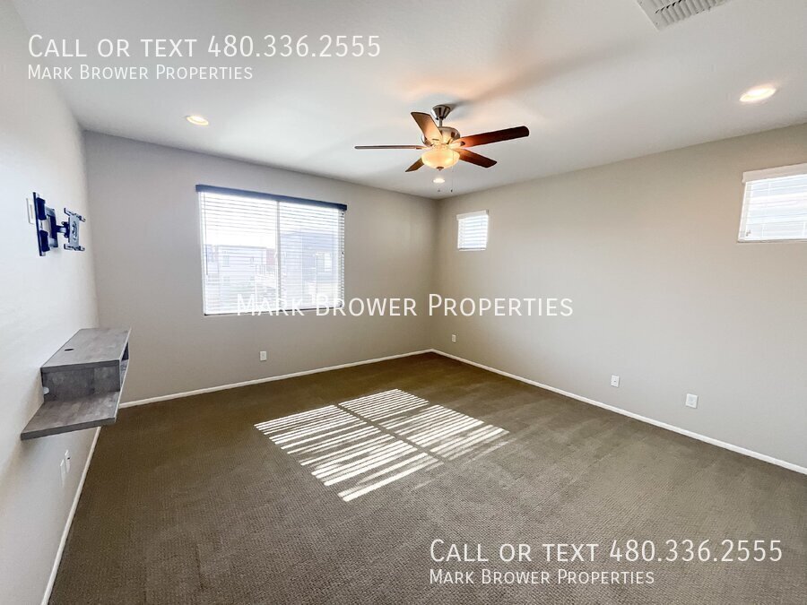 Welcome to Rhythm, a highly desirable gated community in Chandler that offers unmatched resort-style living. Here, you’ll enjoy incredible amenities, including a heated pool and spa, a fitness center, tennis and sports courts, a clubhouse, biking and walking paths, and beautifully maintained community spaces. Perfectly located near the I-10, downtown Phoenix, the Chandler Tech Corridor, Sky Harbor Airport, shopping, dining, and hospitals, this community truly has it all. This stunning three-story home features 3 bedrooms, 3.5 bathrooms, and a thoughtfully designed layout flooded with natural light. Fresh two-tone paint complements the sleek combination of wood plank flooring and plush carpet, creating a warm and inviting atmosphere. On the first floor, you’ll find a spacious living area complete with a wet bar and a full bathroom, making it ideal for a home office, playroom, gym, or even an extra bedroom. The patio opens to a low-maintenance outdoor space, perfect for relaxing or entertaining. The second floor showcases an open-concept design, with a bright living room that includes a pre-installed TV mount and access to a balcony where you can enjoy morning coffee under the comfort of a ceiling fan. The chef’s kitchen is a showstopper, featuring granite countertops, a large island, stainless steel appliances, beautiful cabinetry, and stylish pendant lighting. The dining area provides the perfect setting for meals with family and friends, while a built-in desk nook adds convenience for work or study. A half bathroom is also located on this level. The third floor is your private retreat. The spacious primary suite includes a TV mount and built-in shelf for added functionality, along with a luxurious ensuite bathroom featuring a double-sink vanity, a large walk-in shower, and a custom walk-in closet. This level also includes two generously sized guest bedrooms, a full guest bathroom, and a convenient laundry room equipped with a washer, dryer, and ample storage. Additional features include a two-car garage that offers an extra fridge/freezer, providing convenient storage for your food and beverages. Upgrades throughout the home include modern wood and cable banisters, stainless steel appliances, quartzite countertops in the kitchen and bathrooms, and custom cabinetry in the primary closet. With soaring ceilings, oversized windows, and a premium location overlooking lush green spaces, this home perfectly combines modern design and everyday comfort. This one won't last long, apply today! *Pets Allowed- Up to 2 Other leasing fees: $50 per adult application fee $200 admin fee upon lease signing $30 pet application fees - $25 if paid via ACH (if applicable) 2% monthly admin fee $300 non refundable pet fee- per pet (if applicable) Security deposit equal to one month's rent (interested in paying $0 security deposit? Ask us about our alternative Security Options) Renters insurance required To satisfy the insurance requirement, Tenant may either (1) be automatically enrolled into a policy that satisfies the coverage requirements for $10.95/month; or (2) obtain alternative liability coverage from an insurer of Tenant's choice. The option Tenant chooses will not affect whether Tenant's lease application is approved or the terms of Tenant's Lease.Biking & Walking Path