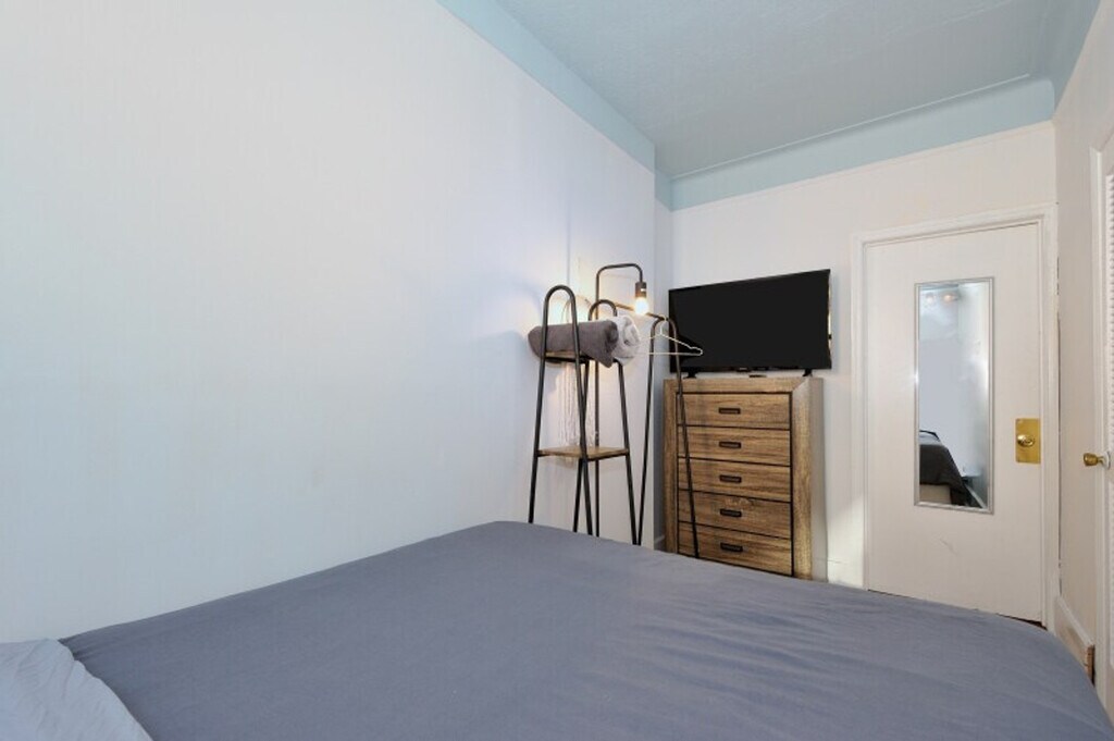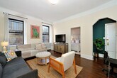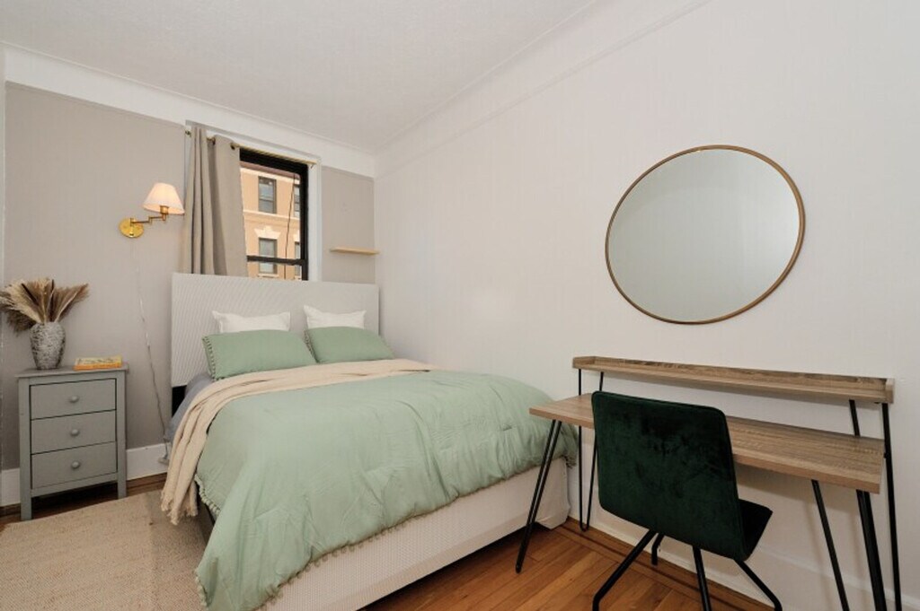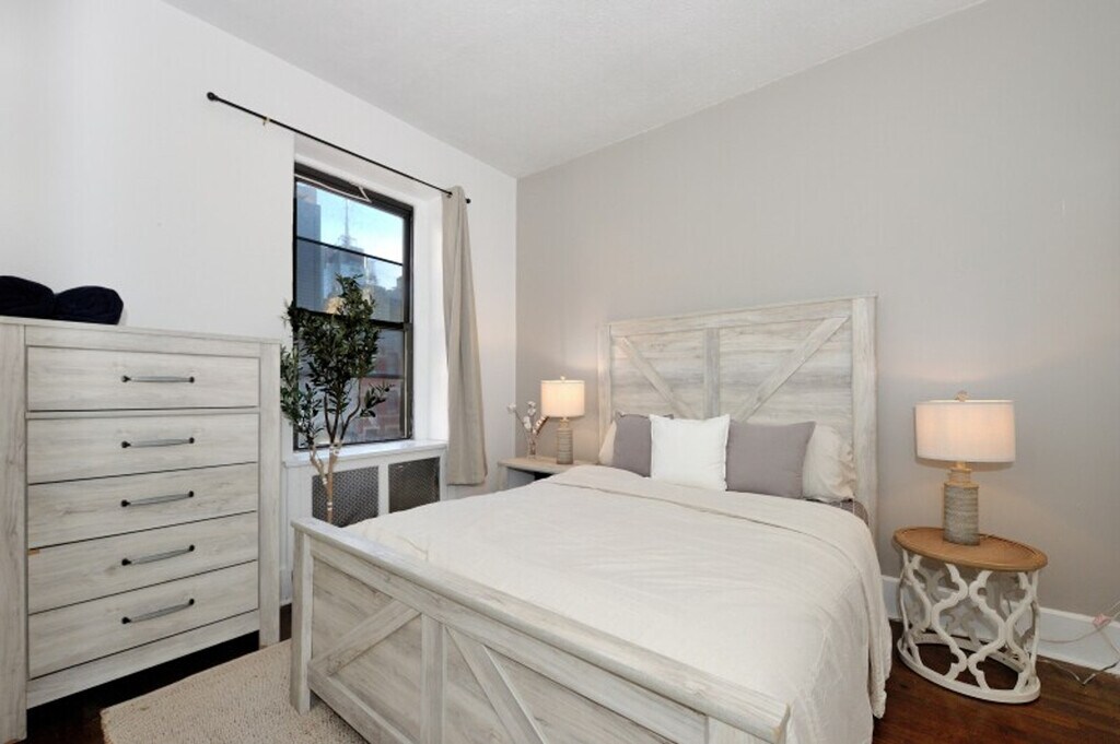 Feel at home in this charming Midtown West 5-bedroom, 2-bathroom furnished apartment. This centrally located home is fully equipped with all the basics and necessities for your convenience. This large and roomy apartment is in the heart of New York City. Sprawl out in the large living room, with two sofas and bright accents that liven up the clean and simple brown and white decor of the space. A dining area is also included and features seating for 8. In the kitchen, you’ll find everything you need to prepare a meal at your home away from home, including a stainless steel refrigerator, stove, microwave, toaster, coffeemaker, utensils and dish ware.