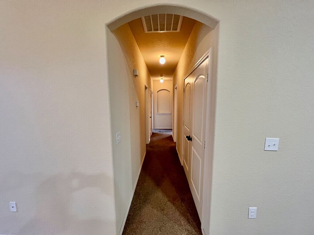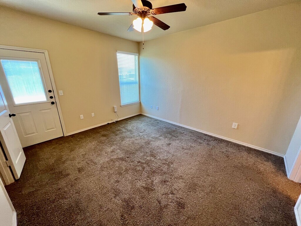 Beautifully designed duplex ideally located near shopping, dining, and entertainment at Creekside. This home features a bright, open floor plan with high ceilings and stylish finishes throughout. The kitchen is a standout with granite countertops, tile backsplash, breakfast bar, and stainless appliances—flowing seamlessly into the main living area. Enjoy wood-look tile flooring in common areas with cozy carpet in the bedrooms. The spacious primary suite offers a private retreat with a walk-in shower, double vanity, and two closets for ample storage. Additional highlights include ceiling fans, washer/dryer connections, and a covered patio overlooking a private, fenced backyard with sprinkler system. The xeriscaped front yard is professionally maintained for easy living. Located in CISD with convenient access to San Antonio—just a 30-minute drive. Schedule your tour today—this one won’t last long!