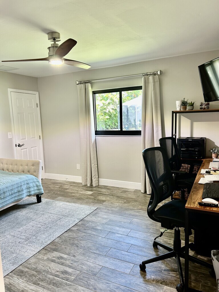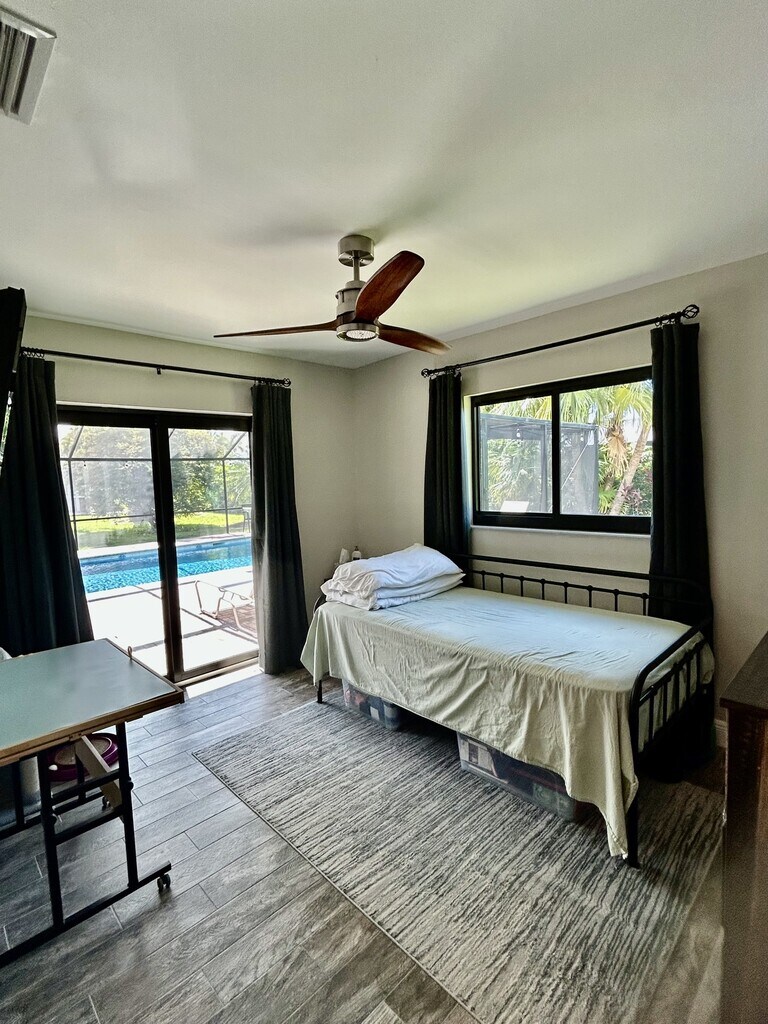 **Available December 15th** Welcome to this beautiful 3-bedroom, 2-bathroom POOL home! Located in the highly sought after ROSE GARDEN AREA. A short walk from Rotary Park and nature walking trails. This fully renovated two-car garage home features tile flooring throughout the house, hurricane doors & windows, electric fire place in main living space, and a modern kitchen with stainless steel appliances, granite counter tops, and a convenient breakfast bar. A separate dining area with view of the pool and a separate pool room (pool table included) are perfect for hosting guests. Two beautifully renovated full bathrooms, one with access to the pool. The southern-facing private backyard features a heated pool, pool cage, and lots of surrounding lounge and seating space. Additional features include a new A/C, all new duct work, and a guest bedroom with professionally installed safe. Annual leases only. Small pets allowed ($250/pet one-time fee). First month's rent, last month's rent, and security deposit (equivalent to 1 months' rent) required to move-in. Call or text Jill from Leizer Property Management to arrange your showing at .