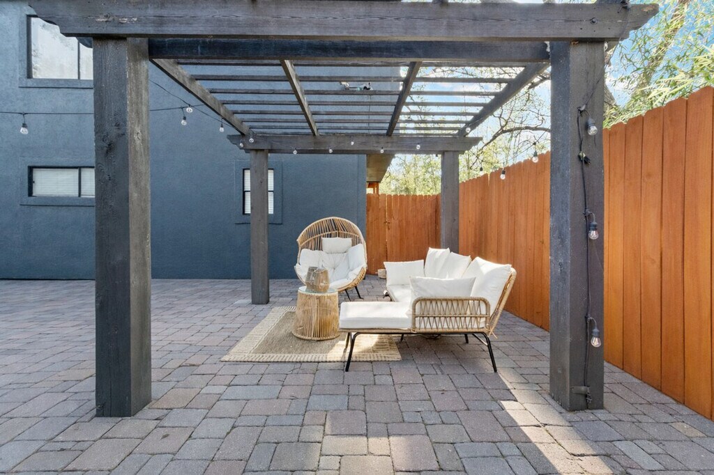 The advertised rate of $7,232/month is the lowest available price, based on a 30 day(s) stay with a move-in date of August 3, 2026. Rates vary depending on the duration of stay, season, and other parameters. For exact pricing and additional pricing components, please visit our website and enter your desired move-in and move-out dates. The rate is applicable when billed upfront; it can be higher if billed in multiple payments. Feel at home in this South Austin getaway, a modern 2-bedroom townhouse perfectly located near downtown, Zilker Park, and some of Austin’s best food, music, and nightlife. Accessed via a short set of stairs, this home blends comfort, convenience, and location, making it ideal for couples, solo travelers, business guests, or longer stays. Step into a bright and thoughtfully designed townhouse filled with natural light, warm wood floors, and modern finishes. The living area features a comfortable sofa with pillows, a Smart TV for streaming, high-speed Wi-Fi, a coffee table, and reading lamps. The fully equipped kitchen includes a stove, oven, refrigerator/freezer, microwave, coffee maker, kettle, toaster, pots, pans, cooking essentials, plates, glassware, and silverware. Enjoy access to a private patio and shared outdoor seating areas. Free on-site parking is available. Enjoy walkable access to local cafés and restaurants. This home is conveniently located near South Congress (SoCo) (5 min), Downtown Austin (5 min), Zilker Park & Barton Springs (7 min), Lady Bird Lake Trail (5 min), Rainey Street (6 min), ACL / Zilker Events (7 min), and Austin Airport (AUS) (12 min). This home is part of a quiet townhouse complex, and you may occasionally hear normal neighborhood sounds. Registration Number: OL [SI]