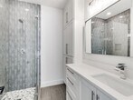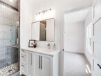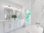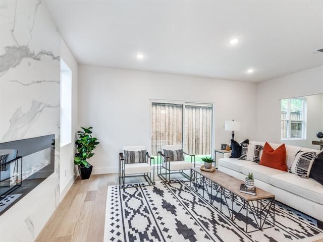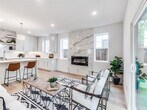 This exquisite newly built home seamlessly blends classic sophistication with contemporary luxury, offering exceptional curb appeal with soft gray painted brick, crisp white accents, and a striking architectural design. Every detail has been thoughtfully crafted, creating an inviting space that feels like home from the moment you step inside. An open-concept layout highlights gorgeous wood flooring that flows seamlessly throughout the main living areas. The chef’s kitchen is a masterpiece, featuring beautiful quartz countertops, a dramatic waterfall island, a classic Carrara marble backsplash, and a charming apron-front sink. High-end stainless-steel appliances, including a Forno professional-style French door convection range, microwave drawer, and refrigerator, make this kitchen as functional as it is beautiful. Soft-close cabinetry with built-in spice racks and trash pullouts adds an extra layer of convenience and organization. The living room is a showstopper, centered around a sleek modern fireplace that creates a warm and inviting atmosphere. Just off the living space, a private study offers the perfect work-from-home set-up or creative retreat. The oversized primary suite is a true sanctuary, featuring a spacious walk-in closet and a spa-like ensuite bathroom with dual quartz vanities, a luxurious freestanding soaking tub, and a frameless glass shower with a built-in niche. A private guest suite offers its own ensuite bathroom with a frameless glass shower and additional built-in storage, while two additional guest bedrooms share a beautifully designed Jack-and-Jill bathroom. This exceptional home is a rare opportunity to experience high-end living in a prime location.