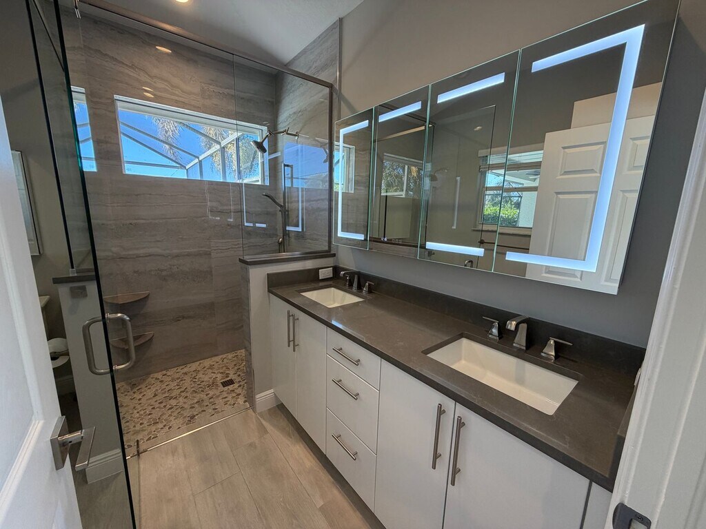 Welcome to the ANNUAL RENTAL - 3 BED / 2 BATH POOL HOME IN AUTUMN WOODS, a stunning residence located in the heart of Naples, FL. This home boasts three spacious bedrooms, two modern bathrooms, and a host of top-tier amenities. The home itself is a vision of elegance with vaulted ceilings, hardwood floor style tile flooring throughout, and an attached 2-car garage. The kitchen is a chef's dream, featuring light quartz countertops, stainless steel appliances, a hood vent for the cooktop, and pristine white cabinets. The open main area concept allows for a seamless flow from the kitchen to the formal dining area and living room. The home's crowning glory is the gorgeous pool, complete with a lake view, screened pool cage, and a covered overhang in the lanai next to the pool. The bathrooms are a modern marvel with top-of-the-line finishes, including light-up mirrors. With laundry in residence, this home truly has it all. The community offers a pool, spa/hot tub, fitness center, and a play area, all within a secure, gated environment. For the active lifestyle, enjoy the bike and jog path under the glow of the streetlights. Experience the best of Naples living in this beautiful pool home in Autumn Woods.