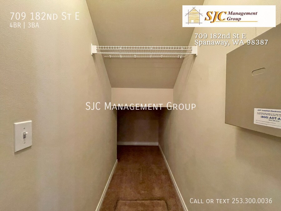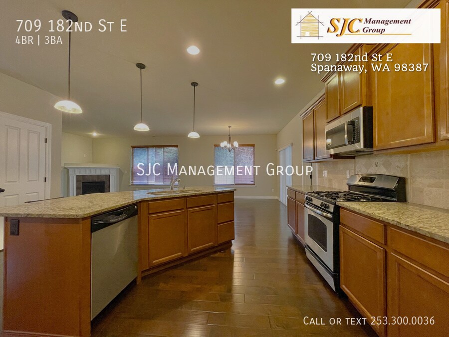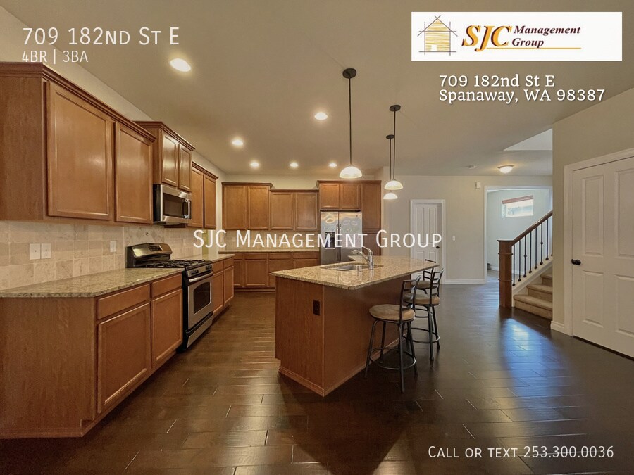 Beautifully maintained home with 4 bedrooms plus a den/5th bedroom in a gated neighborhood. Easy access to JBLM, I-5, and Hwy 512. Inside you’ll find hardwood floors, tall ceilings, white millwork, and a spacious kitchen with gas stove, granite counters, island seating, walk-in pantry, and stainless steel appliances. Cozy gas fireplace in the living room and fresh paint throughout. Main-floor den/5th bedroom also has new carpet. Upstairs features a large primary suite with dual vanity, soaking tub, separate shower, private toilet room, and walk-in closet. Also upstairs are three additional bedrooms, a full bath with dual sinks, and a convenient laundry room with washer/dryer and bonus counter space. Enjoy a fully fenced backyard with a covered patio—perfect for year-round use. Plenty of storage throughout the home. For more information or to set up a viewing please contact the leasing team at SJC Management Group today! NO SMOKING Pets [breed and size restrictions may apply] are allowed, pet screening required. Approved pets will incur a pet mitigation fee (between $150 and $350) at move-in + a monthly pet fee of $35-$75, max two pets. Please note showings can be scheduled online at any time. After hours or weekends, showings must be scheduled and confirmed by our staff before the end of the business day. Our business hours are Monday-Friday from 9 am to 5 pm. We are closed for all major holidays. ADDITIONAL TERMS: Required $85 at move in and additional $35 per month Resident Benefit Package offers an array of advantages. With this package, you'll enjoy convenient benefits such as regular delivery of furnace filters and additional perks designed to enhance your renting experience. UTILITIES: Not Included DEPOSIT REQUIRED: $3150