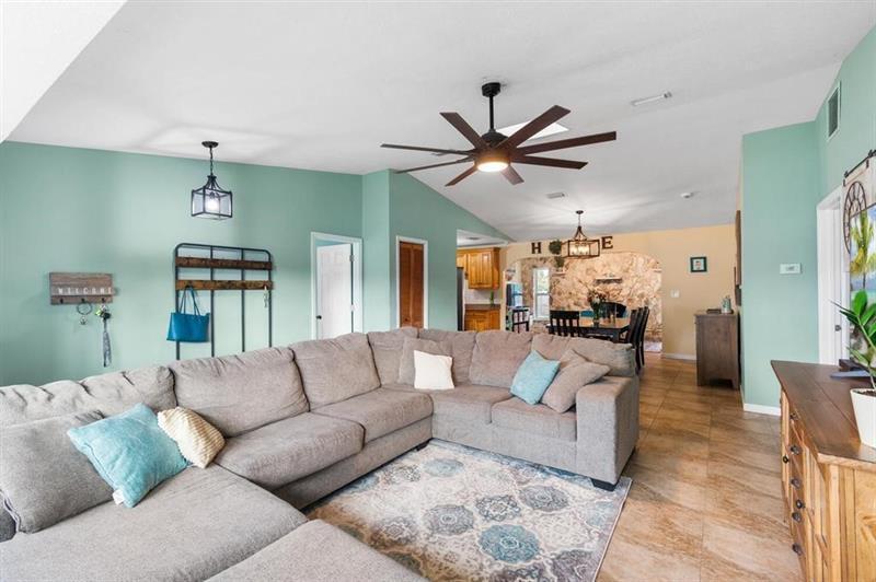 LAWNCARE INCLUDED!! Spacious home with a great layout. This home features 3 bedrooms, 2 bathrooms plus a bonus room for a 4th bedroom, playroom, office with tile flooring throughout, REAL fireplace, vaulted ceilings, sky lights which bring a ton of natural light, expansive galley kitchen with plenty of cabinets, granite counter tops, stainless steel appliances, NEW washer & dryer. HUGE backyard with deck. Long wide paved driveway that can hold plenty of vehicles or a boat.
