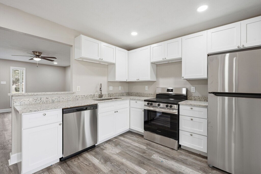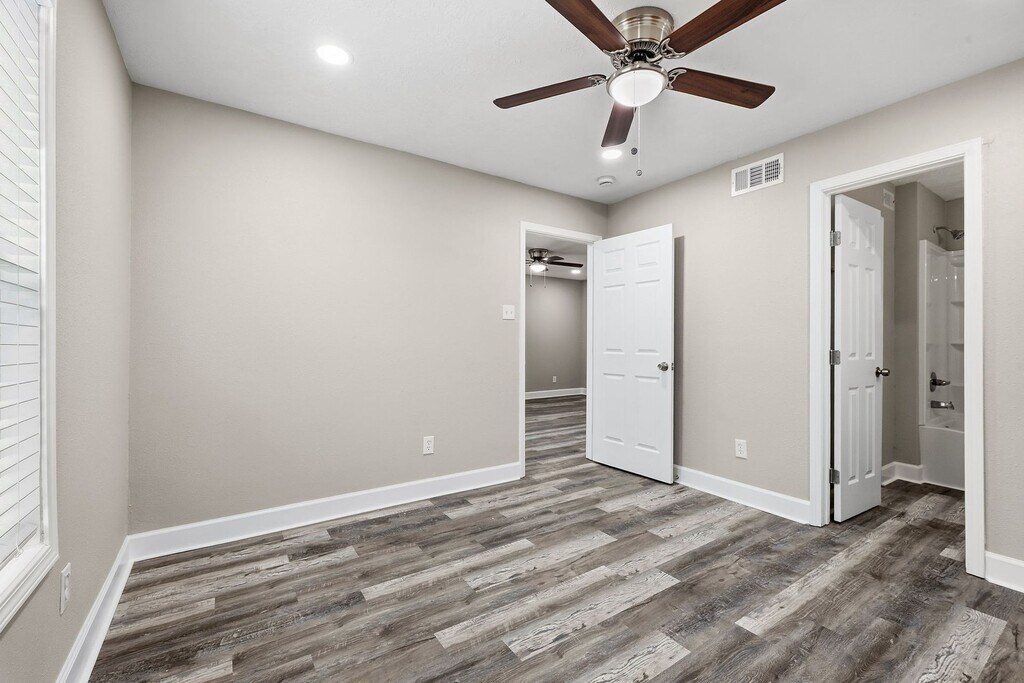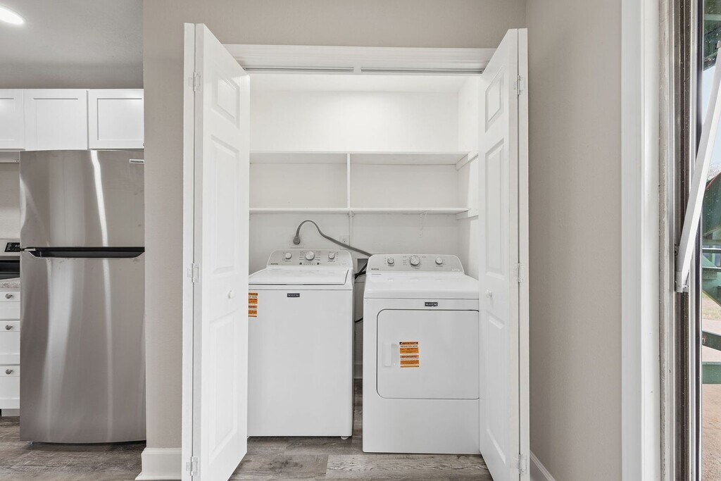 709 Vassar Ct in College Station, TX is a newly remodeled 2-bedroom, 2-bath apartment featuring all bathrooms ensuite, walk in closets, and modern finishes throughout. The unit includes stainless steel kitchen appliances, granite countertops, recessed lighting, ceiling fans, and no carpeting. Enjoy an in-unit full-size washer and dryer, a private balcony, and free off-street parking. Water is included in the rent. Located on a bus route and close to shopping and restaurants, this apartment offers contemporary, low-maintenance living in a convenient location. Virtual Tour: (Please note that images shown and virtual tour are of Unit A. All units feature same amenities and layout.)