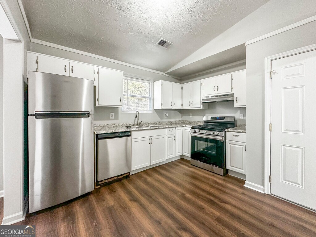 This 3 bedroom, 2 bath home offers approximately 1,426 sq ft of interior living space, designed with an open and practical layout. The main common area features high ceilings, a ceiling fan, and hardwood-inspired flooring, creating a spacious setting for a variety of living arrangements. Large windows allow natural light to brighten the interior. The kitchen includes stainless steel appliances, extensive cabinet storage, and generous countertop space to support everyday cooking and meal preparation. Both bathrooms are arranged for convenience and designed with easy-to-maintain finishes. Each of the three bedrooms offers usable floor space and flexibility for different layout needs. Outside, the property features a front walkway leading to the home and established landscaping. The exterior includes horizontal siding, double-pane windows, and an attached garage providing parking and additional storage options. Located in Fulton County within the Atlanta 30349 area, this home offers access to local amenities, transportation routes, grocery options, and other essential services throughout the community. With its high-ceiling common room, updated kitchen features, and functional floor plan, this home provides a comfortable and versatile living environment.