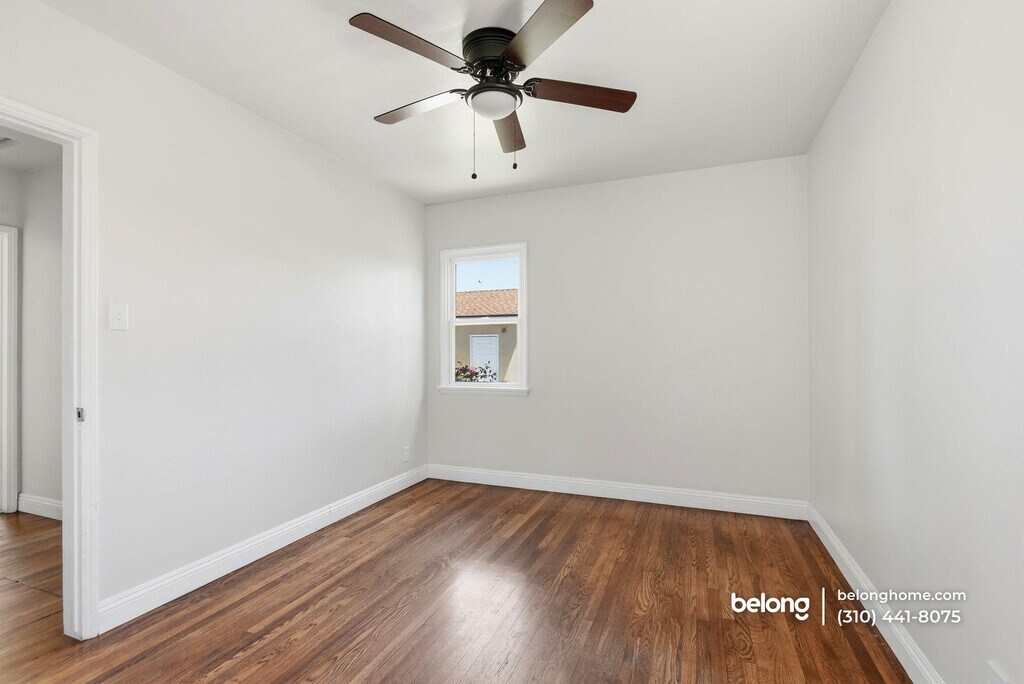 Set on a sunny corner lot in a well-established Long Beach neighborhood, this two-bedroom, one-bath single-story home offers 1,300 square feet of bright, comfortable living with classic California charm. Lush palms, mature landscaping, and a welcoming front porch create an inviting first impression. Inside, warm wood flooring flows seamlessly between the living room, dining room, and updated kitchen, while oversized windows flood the space with natural light and an open, airy feel throughout. The refreshed kitchen is a true standout, featuring rich wood cabinetry, crisp quartz countertops, a tile mosaic backsplash, and a sleek stainless steel gas range with vented hood. A dedicated dining area sits just off the kitchen, ideal for relaxed meals or casual gatherings at home. Both bedrooms offer hardwood floors, ceiling fans, and generous natural light, creating peaceful spaces to unwind at the end of the day. The full bathroom keeps things clean and functional with a modern vanity, tiled tub and shower, and a bright window for added freshness. Outside, a private backyard with grass and a concrete patio delivers great space for entertaining, play, or relaxing under the California sun, while a detached structure adds extra utility. Enjoy quick access to freeways, local shopping, and all the lifestyle perks of Long Beach living, from coastal breezes to a vibrant neighborhood feel. *Our homes come as-is with all essentials in working order. Want upgrades? Request it through the Belong app, and our trusted pros will take care of the rest!