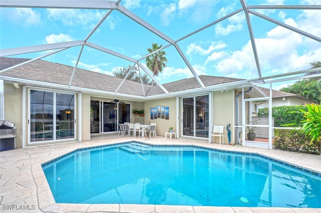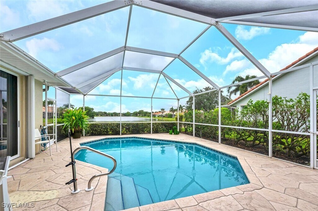 Fully Furnished 3 bedroom,2 bath,2 car garage Single Family pool home just minutes from downtown Naples. Enjoy all the features this home has to offer. A Heated swimming pool with a lake view,a pavered patio to layout in the Naples sun and a fully decorated home with everything you need for comfort. If you enjoy cooking this kitchen has a separate cooktop; combo oven and microwave; beautiful backsplash tiles and spacious countertops. Gorgeous flooring throughout this home. The owner's suite has views of the lake and an access door that goes to the pool area,mirrored closets and the owner's bath has dual sinks,walk in shower and picture window above the sink for extra lighting. The second and third bedroom have a shared bathroom with a combo tub and shower. The laundry room has a washer/dryer and extra cabinets for storage. The amenities included in this community has a Clubhouse with a full kitchen,Community pool,tennis courts and pickleball. So close to Gulf beaches,Fine dining and shopping.