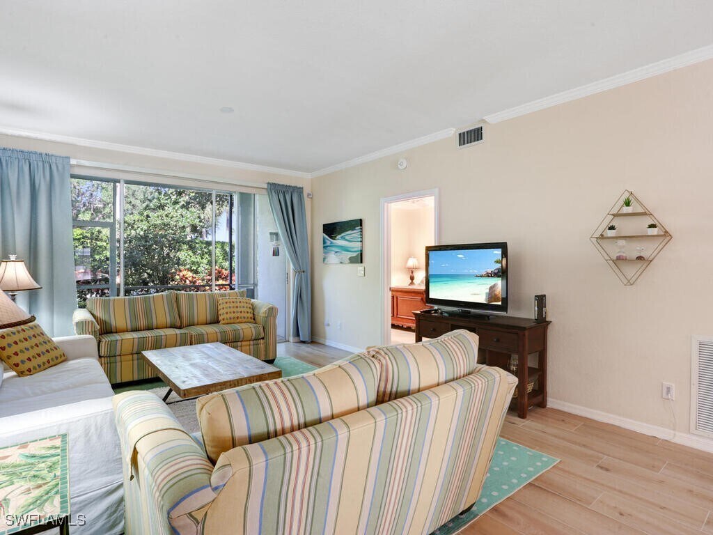 Rented for Season 2026. Relax in this beautiful 3-bedroom,2-bath Pelican Bay retreat in Barrington Club. This quiet,first floor,fully furnished condominium is your ideal vacation home including,clubhouse,pool,BBQs and an enclosed garage for your vehicle and bikes. Landscaped views off the screened back lanai,a third bedroom that doubles as an office or den,an updated kitchen and baths make this home a charming getaway for friends or family. Pelican Bay’s amenities include three miles of white sand beach with lounge chair and umbrella service,two private beachfront restaurants,two tennis centers,a fully equipped fitness center,bike paths,canoes,sea kayaks and Hobie Waves. Make this little piece of Naples yours for six months over the Holidays and season saving the 12% sales tax. Shorter rentals available on request. Short walk to fitness center,tennis courts,Publix,CVS and restaurants. 10 minute walk to Mercato,two sets of movie theaters and a public library. Pet Policy: Dogs less than 25 lbs are permitted with approval from the HOA.