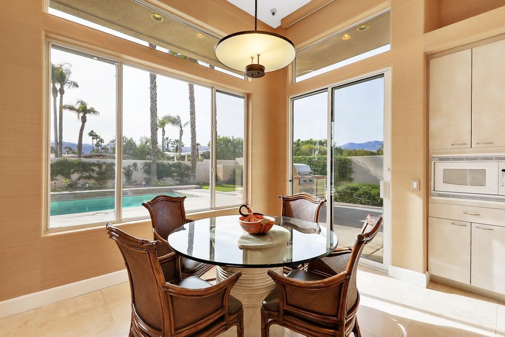 Located in the heart of Rancho Mirage. Minutes away from Tamarisk Country Club and Morningside Country Club. The perfect central location in Rancho Mirage! This wonderful 4 bedroom,4 bath home is new to the vacation market. Much in demand open,split floor plan with great room,formal dining room,media room with super-sized TV and adjacent game room. Large master that enjoys those south mountain views across the sparkling pool and lush backyard. Fourth bedroom is equipped as an office/gym/TV room with convertible sofa. Owner will convert to bedroom upon request. Fabulous South facing outdoor living area with pool & spa is surrounded by spectacular mountain views. Enjoy outside relaxation,al fresco dining on the sprawling patio with BBQ island,cozy fire-pit and plenty of deck making this your perfect vacation home.