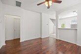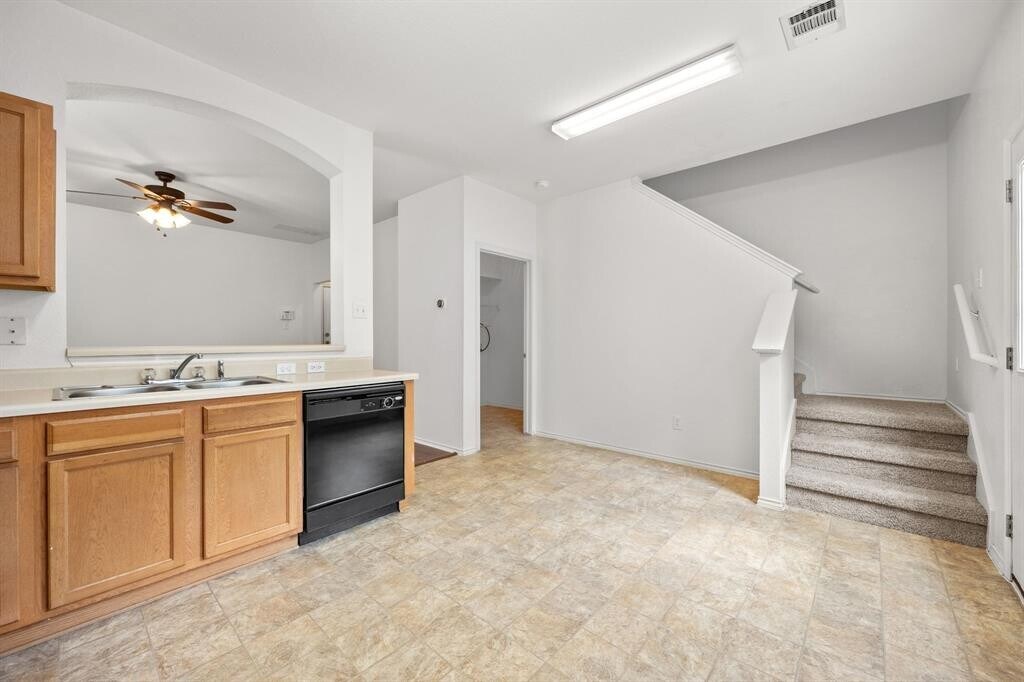 3 bedroom, 2.5 bath end unit of a cul-de-sac in a quiet community. Bright space with tile and wood floors along with new vinyl flooring and carpet. Large kitchen with breakfast bar and eat-in area opens to the living area. Outdoor space backs to a greenbelt with wide open spaces. Only 1/2 block from elementary school. 15-18 Mos lease term.