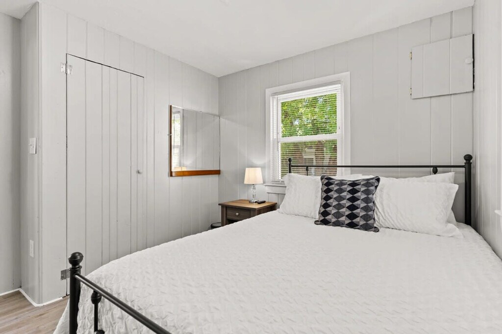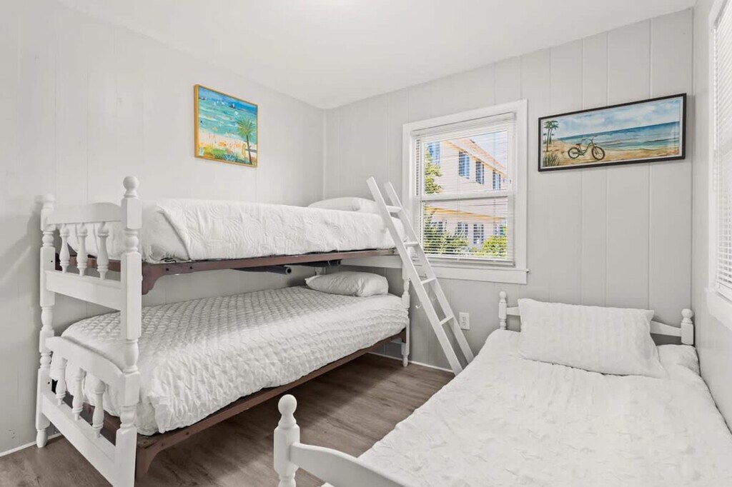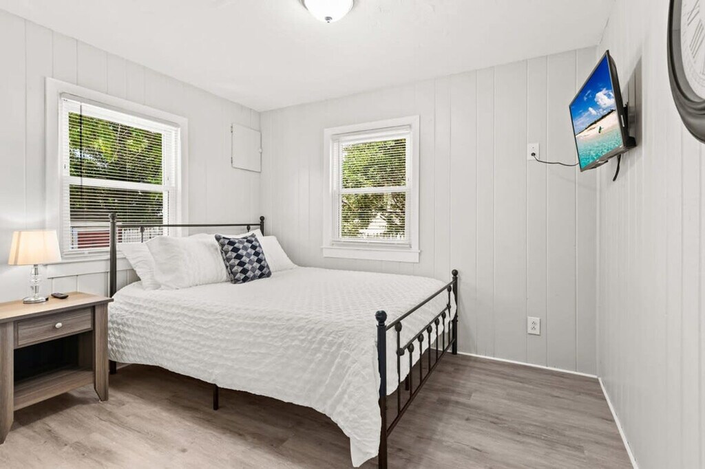Feel at home in "The Salty Dog", Hampton Beach's newest pet-friendly rental, a single-level newly renovated home just 0.3 miles to the beach (7-minute walk). This home features a fully stocked kitchen, central AC and heat via a mini-split system, and 2 bedrooms sleeping up to 5 people. Enjoy the private, fenced-in backyard with a picnic table, gas grill, and cornhole. The fully equipped, open-concept kitchen includes all major appliances and a Keurig coffee maker. A stackable washer/dryer unit is located in the kitchen. The living room offers a comfortable couch and seating, along with a smart TV with the ability to log into streaming services. Relax on the sun-filled front porch with a swing seat and large windows providing ample natural light. Bedroom #1 has a queen bed and a Roku smart TV with the ability to log into streaming services. Bedroom #2 features a twin-over-twin bunk bed and a twin bed. The full bathroom has a stand-up shower, and clean towels are provided. Off-street parking is available for up to 4 cars. A $100 fee per pet applies and will be charged after the booking is confirmed. Hampton Beach is a premier resort town in New Hampshire, boasting a wide variety of activities for all ages (nightly concerts, arcades, restaurants, mini-golf, water activities, fireworks, and more) and is rated among the top 3 cleanest beaches in the U.S. This home is minutes from The Hampton Casino venue, Playland Arcade, and the boardwalk. It's a short car ride to Newburyport, MA, Portsmouth, NH, and outlet shopping in beautiful Kittery, ME. Hampton is perfectly located for a day trip to Boston, Portland, ME, and the White Mountains. A car is needed to get to the property as there is no public transport. No smoking, vaping, or drugs are allowed. No events, parties, or large gatherings are permitted. Quiet hours are from 9:00 p.m. to 9:00 a.m. If you are bringing pets, please clean up after them, as additional payment will be requested for any extra clean-up. Check-out is at 10:00 a.m. You must be at least 25 years old to book. Includes a dedicated work-from-home area on the kitchen table that seats 3. Registration Number: 102947 [SI]