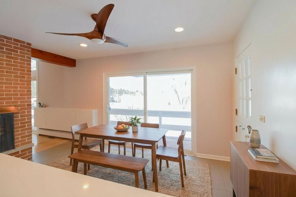 Welcome to this beautifully updated 4-bedroom,2-bath Mid-Century Modern lakefront home located in the highly sought-after Timber Lakes subdivision of Barrington. Set on approximately 1.5 acres of private grounds,this residence offers serene lakefront living with picturesque views of Timber Lake,along with private lake and beach privileges. The home welcomes you with an open,light-filled living space highlighted by vaulted ceilings with exposed wood beams,a signature Mid-Century design element that adds warmth and architectural character. Walls of floor-to-ceiling windows and expansive sliding glass doors flood the home with natural light while seamlessly framing tranquil lake views and connecting the interior to the surrounding landscape. Recent updates include brand-new hardwood flooring throughout and a refreshed kitchen featuring new quartz countertops and new cabinetry,blending modern finishes with timeless design. The flexible floor plan offers four well-proportioned bedrooms,two full baths,and a generous area ideal for everyday living. Enjoy the rare combination of privacy,lakefront views,and modern updates,all within close proximity to Barrington amenities,schools,and commuter routes. A truly special rental opportunity in one of Barrington's most desirable lake communities. All utilities are included. MLS# MRD12553741 Based on information submitted to the MLS GRID as of [see last changed date above]. All data is obtained from various sources and may not have been verified by broker or MLS GRID. Supplied Open House Information is subject to change without notice. All information should be independently reviewed and verified for accuracy. Properties may or may not be listed by the office/agent presenting the information. Some IDX listings have been excluded from this website. Prices displayed on all Sold listings are the Last Known Listing Price and may not be the actual selling price.