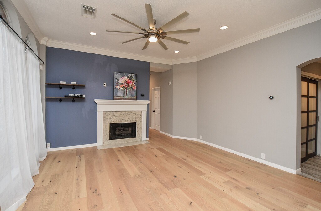 Nestled in the much sought after neighborhood of Capstone,this lovely home features many recent updates! Boasting carpet-free living,a wonderfully updated kitchen and a back yard sure to delight. There are two rooms that can be furnished to accommodate your family's specific needs. Don't need a formal dining area? Then a private home office is accented with French doors. There's also a room located behind the fireplace that could be a reading,game and/or play room. Relax in your owners' retreat complete with an ensuite bath that has a large,separate shower,magnificent soaking tub AND has a vented skylight that opens at the touch of a button. Enjoy your morning coffee on the redone patio deck. Extend the entertaining outdoors with the sidewalks leading to extra seating areas. A bonus storage shed in the back yard can be Mom's hobby hut or Dad's man cave. Fall in love with the nearby park,pond,basketball & tennis courts. Convenient location and highly rated schools. MLS# 74168109