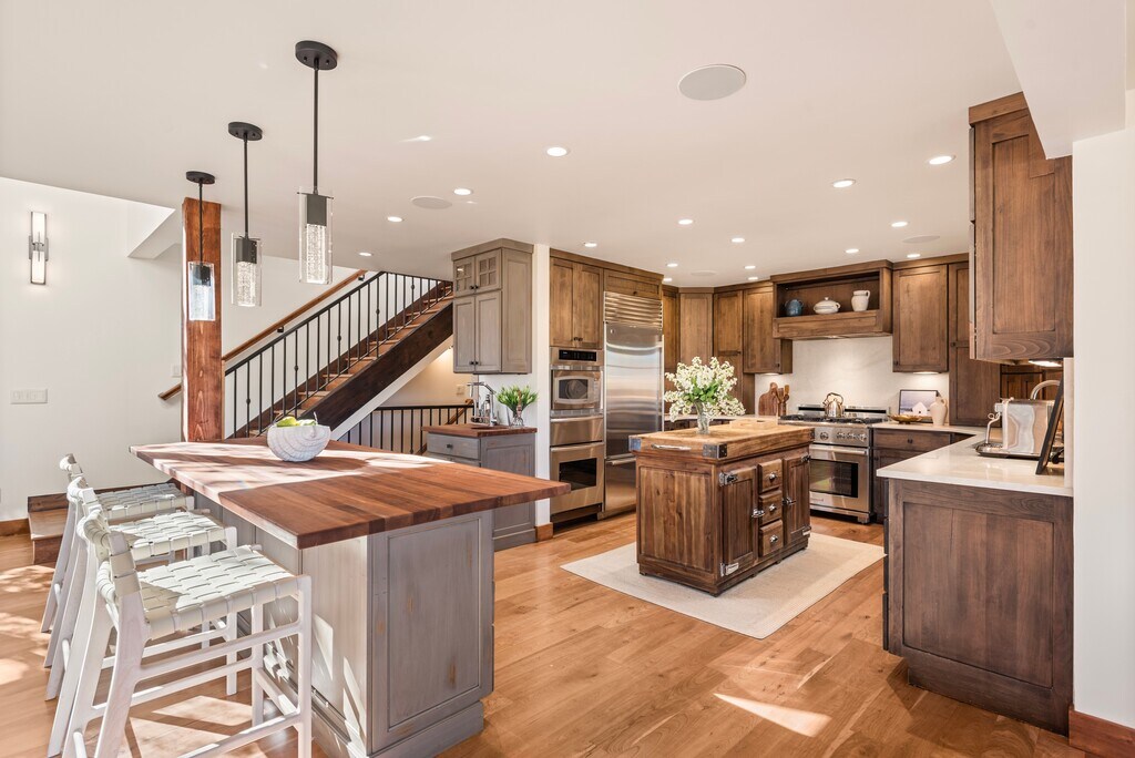Nestled on a quiet street in Ridge Run, this three-level Snowmass Village home offers luxurious mountain living. With four bedrooms and four and a half bathrooms, the home comfortably sleeps eight guests. The lower level features a cozy media room with a wood burning fireplace, perfect for movie nights, board games, and more. Enjoy the incredible north-facing views of the Rim Trail with patios on every level, complete with outdoor furniture, a fire pit, and a gas grill. The property includes a fenced in side yard, and two-car garage with additional parking in the driveway and on the parking pad. Just a short drive to the town center and Base Village, this home combines tranquility and convenience for the ultimate mountain retreat. STR Permit #54740