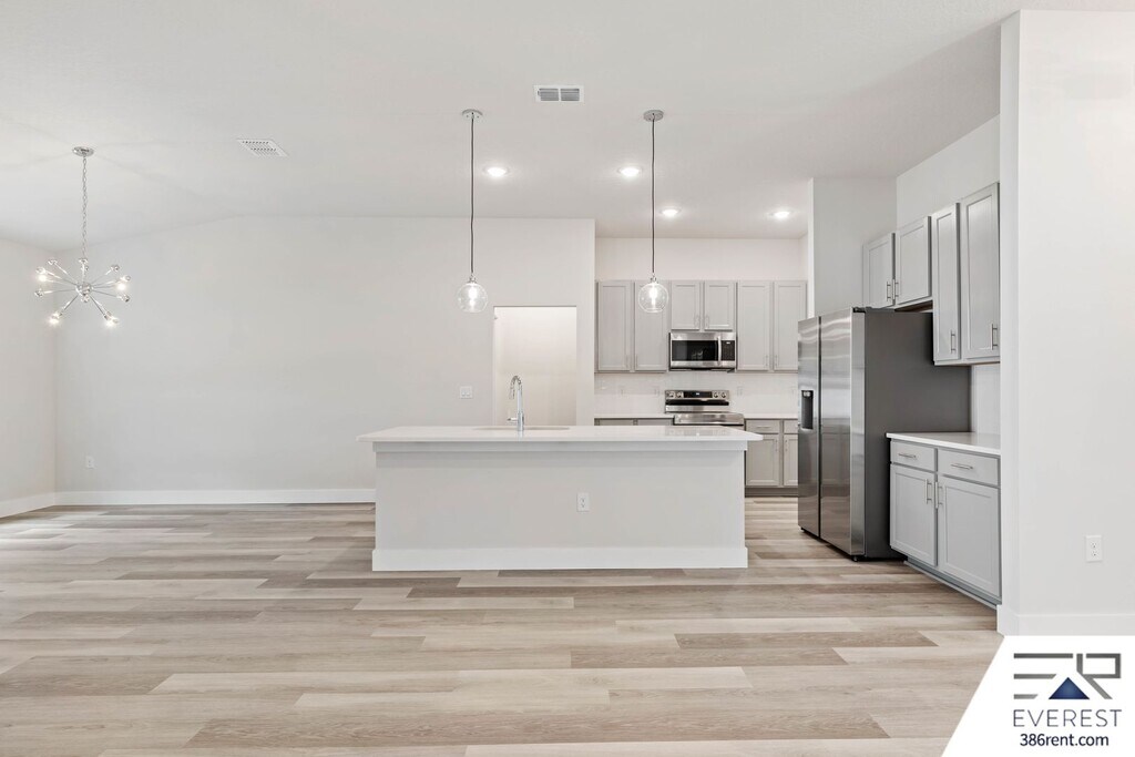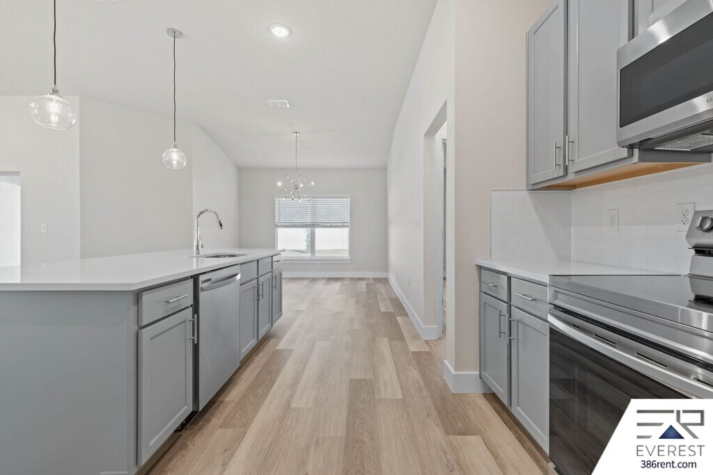 THIS FULLY FENCED, LIKE NEW MODERN 3 BEDROOM, 2 BATHROOM HOME OFFERS WOOD-LOOKING VINYL PLANK FLOORING AND CONTEMPORARY LIGHTING THROUGHOUT... EAT IN KITCHEN WITH STAINLESS STEEL APPLIANCES, LUXURY QUARTZ COUNTERS, UPGRADED CABINETRY, KITCHEN ISLAND, BAR COUNTERTOP AND BREAKFAST NOOK... SPLIT BEDROOM PLAN, MASTER SUITE WITH DOUBLE SINK VANITY, WALK-IN CLOSET AND WALK-IN SHOWER. SPACIOUS LIVING ROOM WITH DOUBLE PANELED SLIDING DOOR LEADING TO THE COVERED PORCH AND FULLY FENCED, PRIVATE BACKYARD. SEPARATE LAUNDRY ROOM, 2 CAR ATTACHED GARAGE. LOCATED IN THE DESIRABLE PINE GROVE NEIGHBORHOOD, WITH EASY ACCESS TO SHOPPING, SCHOOLS, TOWN CENTER, BEACHES, MAJOR HIGHWAYS, DAYTONA BEACH AND HISTORIC ST AUGUSTINE... SOLID LANDLORD! AVAILABLE FOR IMMEDIATE MOVE-IN. HOME HAS 2464 TOTAL SQ FT, 1711 LIVABLE SQ FT. $2150 ON 3-YEAR LEASE $2250 ON 2-YEAR LEASE $2350 ON 1-YEAR LEASE *PLEASE NOTE: BACK PORCH HAS BEEN SCREENED IN, BUT IS NOT PICTURED
