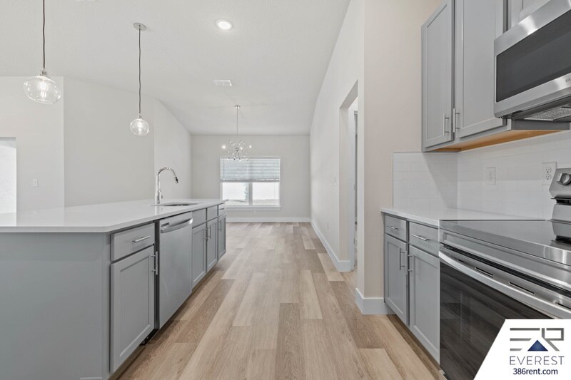 THIS FULLY FENCED, LIKE NEW MODERN 3 BEDROOM, 2 BATHROOM HOME OFFERS WOOD-LOOKING VINYL PLANK FLOORING AND CONTEMPORARY LIGHTING THROUGHOUT... EAT IN KITCHEN WITH STAINLESS STEEL APPLIANCES, LUXURY QUARTZ COUNTERS, UPGRADED CABINETRY, KITCHEN ISLAND, BAR COUNTERTOP AND BREAKFAST NOOK... SPLIT BEDROOM PLAN, MASTER SUITE WITH DOUBLE SINK VANITY, WALK-IN CLOSET AND WALK-IN SHOWER. SPACIOUS LIVING ROOM WITH DOUBLE PANELED SLIDING DOOR LEADING TO THE COVERED PORCH AND FULLY FENCED, PRIVATE BACKYARD. SEPARATE LAUNDRY ROOM, 2 CAR ATTACHED GARAGE. LOCATED IN THE DESIRABLE PINE GROVE NEIGHBORHOOD, WITH EASY ACCESS TO SHOPPING, SCHOOLS, TOWN CENTER, BEACHES, MAJOR HIGHWAYS, DAYTONA BEACH AND HISTORIC ST AUGUSTINE... SOLID LANDLORD! AVAILABLE FOR IMMEDIATE MOVE-IN. HOME HAS 2464 TOTAL SQ FT, 1711 LIVABLE SQ FT. $2250 ON 3-YEAR LEASE $2350 ON 2-YEAR LEASE $2450 ON 1-YEAR LEASE *PLEASE NOTE: BACK PORCH HAS BEEN SCREENED IN, BUT IS NOT PICTURED