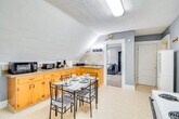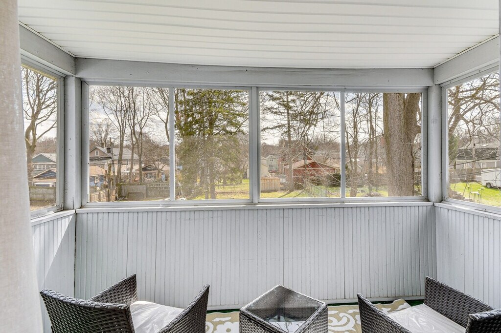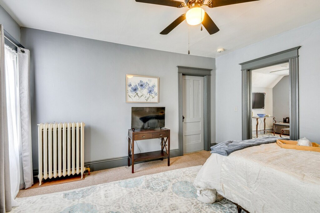 Feel at home in this 2-bedroom, 1-bath apartment in Rochester's South Wedge Historic District. This single-story apartment requires using an interior staircase to access. This apartment features 3 Roku TVs, a dining table, and a screened-in porch, perfect for relaxing. The kitchen is equipped with a refrigerator, stove/oven, microwave, drip coffee maker, toaster oven, slow cooker, dishware and flatware, and cooking basics. Additional amenities include a shared backyard, free Wi-Fi, an iron and board, trash bags and paper towels, towels and linens, complimentary toiletries, radiator heating, window a/c units, and ceiling fans. This apartment is brilliantly located 0.7 miles from Highland Hospital and 1.8 miles from Strong Memorial Hospital. While you’re out and about, be sure to check out downtown eats, catch a game at Blue Cross Arena, or see a play at Geva Theatre. A long-term tenant lives on-site in the completely separate downstairs unit and may be present during your stay. No smoking or vaping of any material, no pets allowed, and no events, parties, or large gatherings are permitted. Your safety matters. This property features 2 exterior security cameras. Camera 1 is located on the side of the home facing the driveway. Camera 2 is located at the rear of the house facing the backyard and walkway to the unit entrance. These cameras do not look into any interior spaces. The cameras continuously record video. [SI]