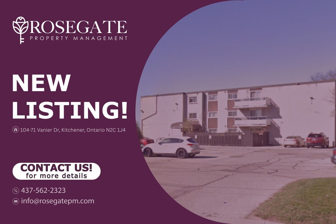 All-Inclusive 3-Bedroom Home with Parking, Porch & Backyard in Kitchener Welcome to Unit 104 at 71 Vanier Dr, Kitchener — a spacious and well-maintained 3-bedroom, 1.5-bathroom home offering approximately 1,100 sq. ft. of comfortable living space. With all utilities included and one dedicated parking space, this property provides outstanding value for families or professionals seeking a professionally managed Ontario rental.The home features a functional layout with generous living and dining areas, along with a primary bedroom complete with a walk-in closet for added storage and comfort. The thoughtful design allows for easy day-to-day living, whether you’re working from home or spending time with family.Enjoy outdoor living with a welcoming front porch and access to a shared backyard, ideal for relaxing, entertaining, or enjoying fresh air. These outdoor features add to the home’s charm and livability.Professionally managed by Rosegate Property Management, a trusted Ontario rental property management company, this Kitchener rental home is conveniently located near schools, parks, transit, and shopping. A spacious, all-inclusive opportunity that won’t last long — book your viewing today and secure your next home.