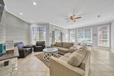 Fully furnished available for winter monthly rental 10/19/2025-4/1/2026. Monthly prices range from $3200/mo-$6100/mo depending on month. Contact for details. Nestled between the bay and championship golf courses, 'Amazing View' in the upscale Vantage Pointe community offers 3 floors of luxury living plus a 6-seat golf cart. This 4BR/4.5BA townhome sleeps 11 and features an open-concept main level with a full kitchen, stainless appliances, stone counters, breakfast bar, coffee bar, and screened porch overlooking the fairways. The master suite offers a king bed, fireplace, balcony, and spa bath; guest rooms include private en suites, and the top floor is a kid-friendly retreat with 3 twin beds and HDTV. Enjoy serene surroundings, spacious comfort, and resort living.