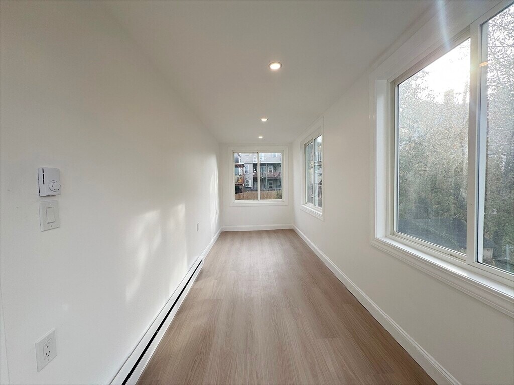 Now is your chance to upgrade to a refreshed + expansive duplex-style top-floor unit w/ private entry + stairwell leading to 4+ bedrooms,1 bath,laundry,and a shared yard. The bow-front living room and adjacent bedroom/ office with a closet offer Chelsea Creek views. The main bedroom offers double closets and easily fits a K/Q bed and furniture. Two additional bedrooms are equal in size,each with a window,closet,and space for a queen bed. The refreshed bathroom complements the updated eat-in kitchen featuring brand-new stainless-steel gas stove and fridge,granite counters,and a dining area. Enjoy the enclosed,heated rear porch with new vinyl flooring overlooking the yard. Unit is freshly painted w/ gleaming hardwood floors,high ceilings,and abundant natural light. Free laundry in basement. Conveniently located near bus routes,Condor Urban Wild,and American Legion Fields. First months rent,one month security deposit and 700+ credit required. Pets considered with strong apps MLS# 73452297