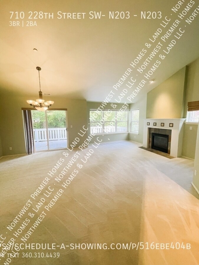 This beautifully updated 2 bedroom plus 3rd-bedroom/den/office condo offers comfort and style. The large kitchen is designed for both cooking and entertaining, featuring granite countertops, ample cabinetry, a pantry, a gas range, and a convenient eating bar. The king-size primary suite overlooks a tranquil wooded area and includes a walk-in closet and ensuite with a soaking tub. The living room features vaulted ceilings, a cozy gas fireplace, and flows into a separate dining room with westerly views. Large windows fill the home with natural light. Enjoy outdoor living on the huge deck with extra storage. Two-car attached garage, washer and dryer, just minutes from Bothell with shopping, dining, easy freeway access. This is a non-smoking property. Pets are considered on a case-by-case basis with pet screening, deposit, and monthly pet rent. 2 animal limit. $40.00 application fee per adult, $200.00 non-refundable fee, deposit equal to one months rent if fully qualified. Schedule a showing 24/7 by calling . We do not accept Comprehensive Reusable Tenant Screening Reports as defined by and pursuant to RCW 59.18.
