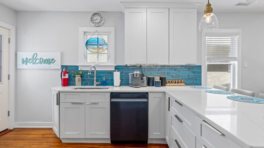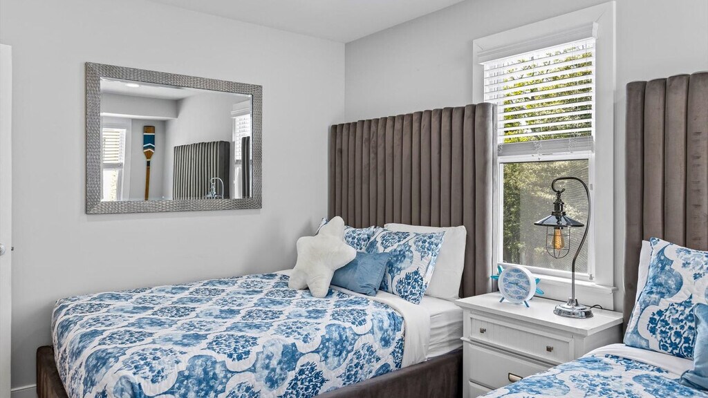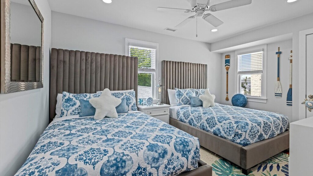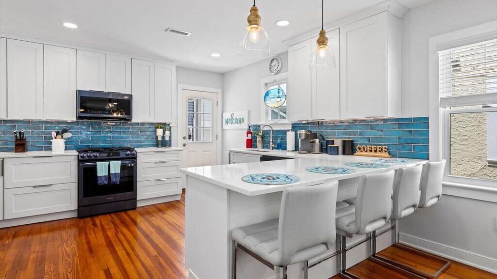 Experience coastal living and feel at home in this brand-new 3-bedroom, 2-bath Ocean City townhouse in the North End/Gardens area. This modern townhouse offers high-end finishes, open living spaces, and stylish coastal comfort. The stunning designer kitchen features quartz counters, custom cabinetry, stainless steel appliances, and an island with bar seating. A washer and dryer are in-unit for easy laundry during your stay. The property comes stocked with a starter supply of paper towels, toilet paper, hand soap, dish soap, dishwasher detergent, laundry detergent, and trash bags. All bedding, as well as a full set of bath towels, are provided, freshly laundered, and ready for you to enjoy! This home is equipped with central heating and air. Eight beach tags are conveniently collected on a lanyard for grab-and-go convenience, and eight beach chairs are included. Situated in Ocean City's sought-after North End/Gardens area, this quiet residential neighborhood offers the perfect balance of beach-town charm and vacation convenience. Just a short walk away are Ocean City's award-winning beaches and the iconic boardwalk. A few blocks inland, Asbury Avenue serves as the town’s bustling downtown district, lined with boutique shops, coffee spots, bakeries, and restaurants. Guests will appreciate the walkability, bike-friendly streets, and ease of access to nearby parks, playgrounds, tennis courts, and the bay. Quiet hours are between 10 pm and 8 am. Guests must be respectful of our neighbors, other guests, and the overall community at all times. Any disturbance incident that results in police involvement may result in the immediate termination of a reservation and removal from the rental without refund or warning. There is a zero-tolerance policy. All properties are absolutely no smoking of any kind, including cigarettes, cannabis, vapes/e-cigs, etc. Any evidence of smoking will be automatically billed an additional cleaning fee. Guests are fully responsible for any damage, excessive cleaning, or disturbances caused by their pets during their stay. By bringing a pet onto the property, you agree to assume all liability for your pet's behavior and to indemnify and hold harmless the property owner and management from any claims or damages arising from your pet. Guests with pets are 100% responsible for keeping their pet under control at all times. There are security cameras present on this listing in the following locations: exterior front entryway/doorbell camera, exterior rear entrance and deck/patio/driveway area. These cameras may record audio and video footage 24/7. [SI]