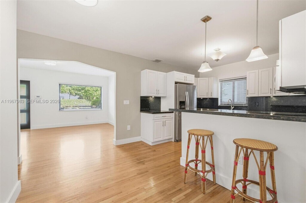Welcome to this charming single-family residence located in Miami’s desirable MiMo District & Bayside neighborhood. Situated on a quiet section of 62nd Street, this classic mid-century modern home offers 3 bedrooms and 2 updated bathrooms with bright, open living spaces and beautiful wood flooring throughout. The living area flows seamlessly into a Florida room, creating flexible space for relaxing or entertaining. The kitchen features quartz countertops and stainless-steel appliances. Impact windows and doors provide added safety and energy efficiency. Recent improvements include a new roof, fresh interior and exterior paint, an updated camera and security system, and a new gate opener. Washer and dryer are conveniently installed in the home. The property is fully gated and fenced, offering privacy and security. Newly installed turf in both the front and backyard creates a low-maintenance outdoor space with a private garden-style patio, ideal for outdoor dining and entertaining. The home is located just moments from the beautiful bay and offers bay/sea sounds from the property. Centrally located in the heart of the MiMo District with close proximity to Baywood Park, neighborhood shops and restaurants, and the Legion Park Farmers Market. Convenient access to major roadways, dining, and waterfront views. MLS # A11967983