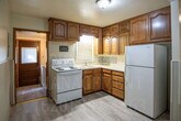 Welcome to this inviting 2-bedroom duplex offering carpeted floors, an arched entryway, and ceiling fans throughout. The kitchen features oak cabinets and white appliances, and a cozy front porch provides a great spot to relax. Conveniently located near local amenities, this home offers a practical layout with comfortable living space.