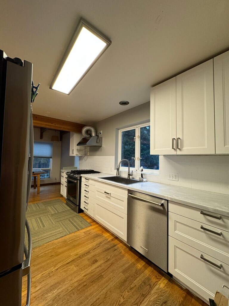 This 4-bedroom, 2-bath home offers over 1,600 sq. ft. of living space in a quiet Bainbridge Island setting with easy access to bus route 93, connecting you to downtown Winslow and the Seattle ferry terminal. The main level features an open kitchen, dining, and living area with plenty of natural light. The kitchen is designed for cooking and entertaining, complete with stainless steel appliances and a chef-friendly layout. Hardwood floors on the main level are being refinished prior to move-in. The property includes a ductless heat pump for efficient heating and air conditioning, a large fenced yard with space for outdoor activities, and garden beds at the front of the home. The barn on the property is reserved for owner storage. Pest control and yard care are included in the rent. A full month’s rent, a security deposit equal to one month’s rent, and a $350 nonrefundable administrative fee are due upon move-in. For showings or questions, please email . Application guidelines and more information are available at