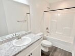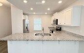 View In 3D: Located in the desirable Commanders Cove subdivision, this well-designed 3-bedroom, 2-bath home offers 1,454 square feet of comfortable living space with vinyl plank flooring throughout the main living areas and cozy carpet in all bedrooms. Inside, you’ll find an open flow from the kitchen to the spacious living/dining area. The kitchen is equipped with a hop-up bar, ample counter and cabinet space, a deep-basin undermount sink, and stainless steel appliances including a French door refrigerator, glass-top stove/oven, built-in microwave, and dishwasher. The primary suite is privately located just off the living room and features a tray ceiling with ceiling fan, a generously sized walk-in closet, and an en-suite bathroom with dual vanities and a tub/shower combo. Two additional bedrooms are situated at the front of the home and share a second full bath with a single vanity and tub/shower combo. Additional highlights include a dedicated laundry room with space for a full-size washer and dryer, a welcoming covered front porch, and a fully fenced backyard complete with a concrete patio.