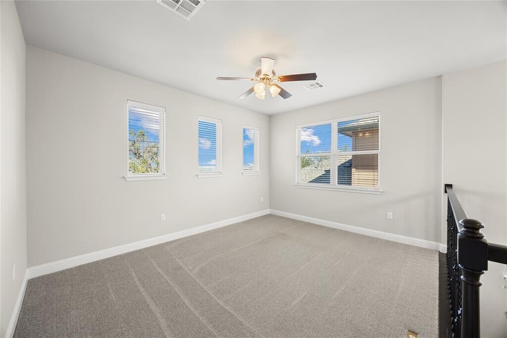 Alice SpanjersbergExperience the pinnacle of executive living in this stunning, light-filled residence the ultimate lock-and-leave sanctuary. This free standing condo boasts 4 generously-sized bedrooms and 3 full luxury bathrooms, the home's open-concept design is ideal for entertaining, seamlessly connecting the kitchen to the sophisticated main living area. The kitchen features premium stainless steel appliances, a high-efficiency gas cooktop, sleek Silestone counters, and an oversized center island with a double sink, perfectly blending form and function. Retreat to the expansive primary suite, offering a spa-like ensuite bathroom with a commanding walk-in shower. A versatile fourth bedroom on the main level is perfectly configured as a private executive office or guest quarters. Efficiency is paramount, highlighted by dual tankless water heaters. This property is curated for a low-maintenance lifestyle, perfect for the discerning, busy professional who values their time. Enjoy very minimal upkeep as the HOA maintains the front yard and the backyard includes high-end turf. Savor beautiful sunsets from the primary suite and the upstairs flex room. Community amenities, including dedicated green spaces, dog parks, and a contemporary park pavilion, further elevate the experience. Enjoy unparalleled convenience with proximity to essential services and premier recreation at Lakes Austin and Travis, including great hiking/biking. Zoned to top-rated LISD schools, including Vandegrift High School, and located close to High Point 2222, HEB, Cineapolis, dining, and shopping.