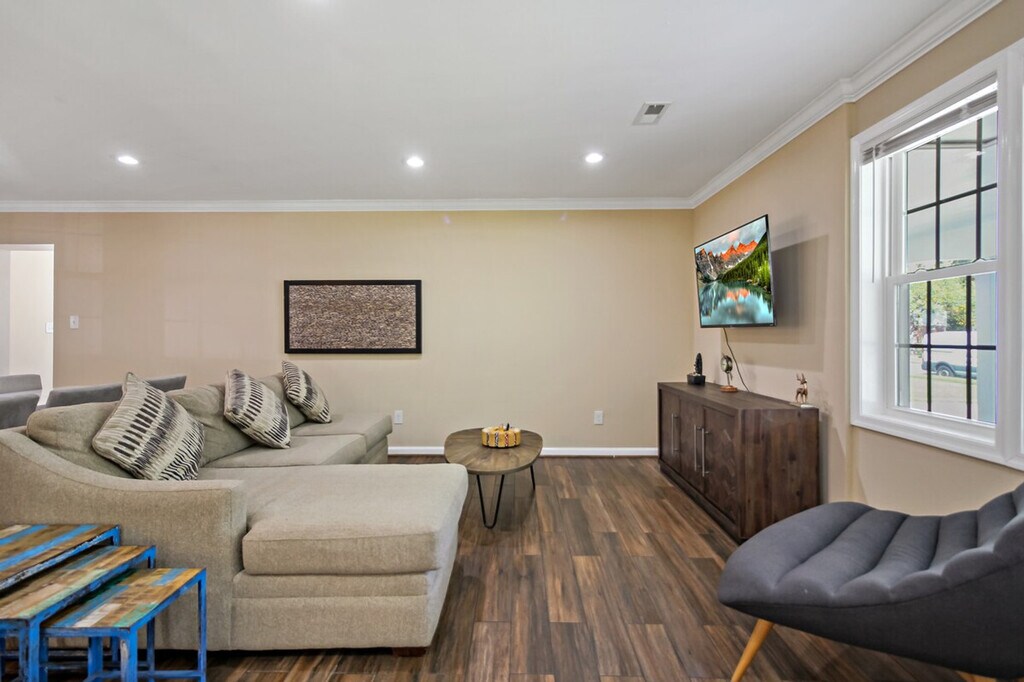 Feel at home in this sunny, clean, and spacious 5-bedroom single family home minutes from DC. This single-level home has no stairs. This home features 4.5 bathrooms, and two of the bedrooms have en-suite baths. Enjoy the nation’s capital with coffee outdoors and spend lazy weekends over brunch or exploring relaxed shops and unique spots, each with its own charm. With quick access to Arlington Blvd (Route 50), I-495, I-395, and Route 7, this centrally located home puts you minutes from everywhere. No music or events are allowed. Due to regulations, you may not have anyone in the unit other than those mentioned at any given time, whether staying or visiting. Quiet hours are strictly enforced. [SI]