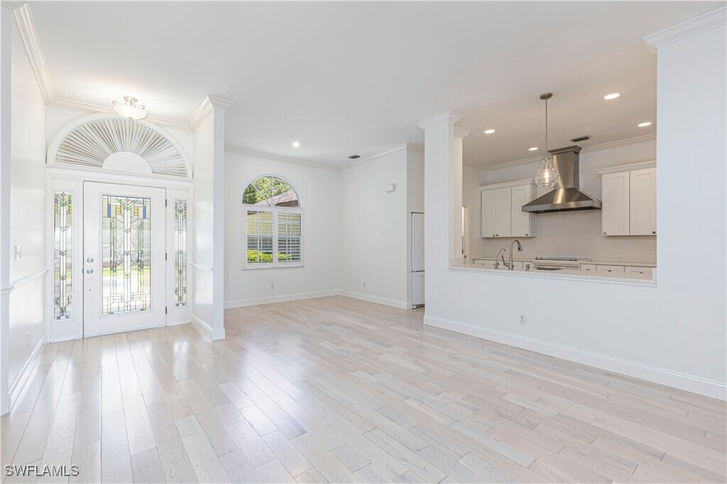 7106 Lone Oak Blvd is a charming single-story residence nestled on a generous corner lot within Walden Oaks. Featuring an open floor plan,upscale finishes,and tranquil outdoor living areas with lake views,the property blends comfort,privacy,and community amenities. Situated near North Naples’s best attractions,it’s a peaceful yet well-connected opportunity. The home sits on 1/3 of an acre with a large circular driveway. If you're looking for serenity you'll find it here. Entry through a stained-glass front door with sidelights leading into a bright foyer. Open floor plan with 10 foot ceilings. The back patio offers privacy and a view onto the lake or sit in the enclosed lanai with floor to ceiling hurricane impact glass doors and pavers - let the cool breeze in. The interior was just painted a neutral color. New ceiling fans,light fixtures and vanity. Plantation shutters and recessed lighting,built-in shelving in the dining room,faux fireplace,crown molding,chair rails. Wood-look flooring throughout,tile in select areas. Split-bedroom layout for privacy. Walden Oaks is a small community located centrally in North Naples where all the action is easy to get to,including the beaches. The community pool sits on an island surrounded by a lake with pickelball and tennis courts. Enjoy the walking/jogging trails throught the mature landscaped neighborhood. Located in an A rated school district. Landscaping,Hotwire Fision cable and internet are included.