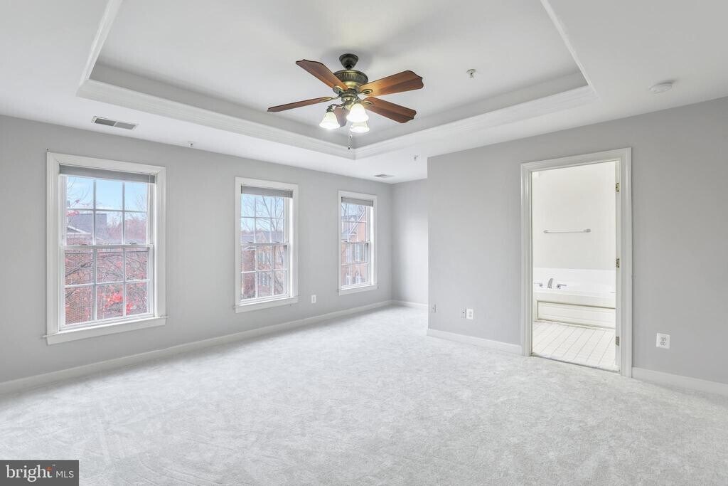 The open kitchen features a center island and flows into a comfortable family room with a gas fireplace. Step out onto the deck and enjoy peaceful views — the home backs to trees for added privacy. The upper level includes a large primary bedroom with a tray ceiling, walk-in closet, and en-suite bath with double vanities and a jetted soaking tub. Two additional bedrooms and a full bath are located on the same level, offering plenty of space for family or guests. The top-level loft provides great flexibility for a home office, guest area, or playroom. The lower-level family room offers walk-out access to the backyard. Excellent location — minutes to Ft. Belvoir, shopping, dining, and major commuter routes!