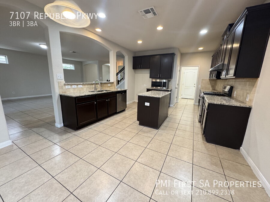 Large 3 bedroom and 2.5 bath home at Republic Oaks. Open floor plan with two dining area with large family room for entertaining. Large kitchen with extra cabinets and island kitchen with granite countertops. Oversized master bedroom suite with other 2 bedroom on the second floor.
