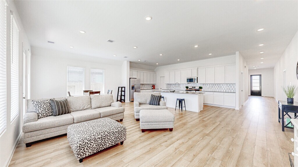 Discover this charming 4-bedroom,3-full-bath home in the coveted Westwood community—Step through a grand entry into an open-concept floor plan anchored by vinyl plank flooring and soaring ceilings. The chef’s kitchen dazzles with wall-to-wall white shaker cabinetry,Quartz countertops,a stunning tile backsplash,and a large island perfect for gathering. A versatile Office/Flex room offers space for remote work,study,or play. The primary bedroom is spacious enough for a sitting area and larger furniture. Three additional bright bedrooms and three beautifully appointed baths provide comfort and privacy. Outside,entertain under the covered patio or unwind in the fully fenced yard. With resort-style amenities at your fingertips,this Westwood gem is ready to welcome you home. Home is just a short stroll from the elementary school,walking trails,fishing ponds,and playground. MLS# 41940917