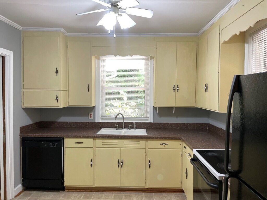 2 BEDROOM 1 BA BRICK HOME, HEATPUMP, CENTRAL AIR, 1,248 SQ FT, CITY WATER AND SEWER, STOVE REFRIGERATOR AND DISHWASHER INCLUDED (BLACK) LARGE COVERED BACK PORCH, HARDWOOD AND VINYL FLOORS, DINING ROOM AND BREAKFAST ROOM, FENCED BACK YARD, CONCRETE DRIVE, SINGLE CARPORT