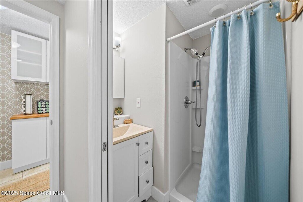 This three bedroom,two bathroom,beachside home is nestled in a quiet cul-de-sac and is filled with charming features,from the shiplap ceilings with a wooden beam,to the cozy fireplace,butler's pantry and kitchen. The outside features a beautifully pavered back patio,2 outdoor showers,large screened-in patio,professionally installed turf and an adjacent air-conditioned she-shed/home office. Plenty of room for boat or RV parking. Just blocks from the ocean and convenient to wonderful restaurants and shopping. This home offers the additional comfort of hurricane impact windows and doors,newer roof and meets current insurance requirements for all hurricane credits. Enjoy living beachside and the coastal feel of this gem! Up to 2 Dogs considered with non-refundable deposit,up to 35lbs. MLS # 1066427