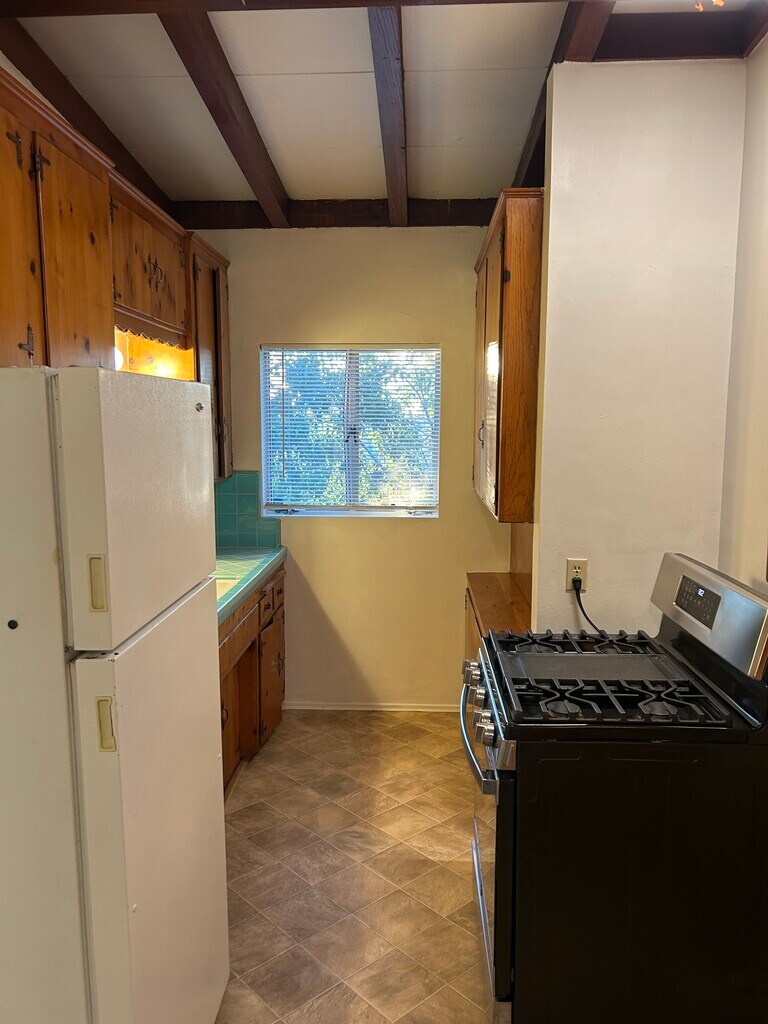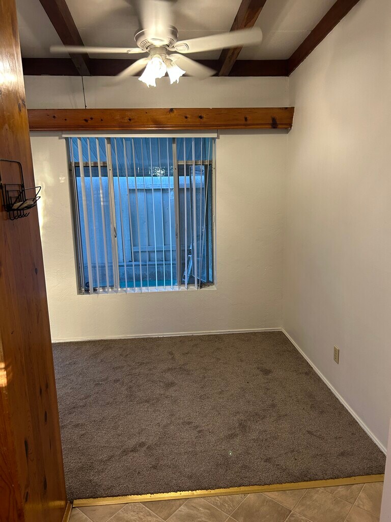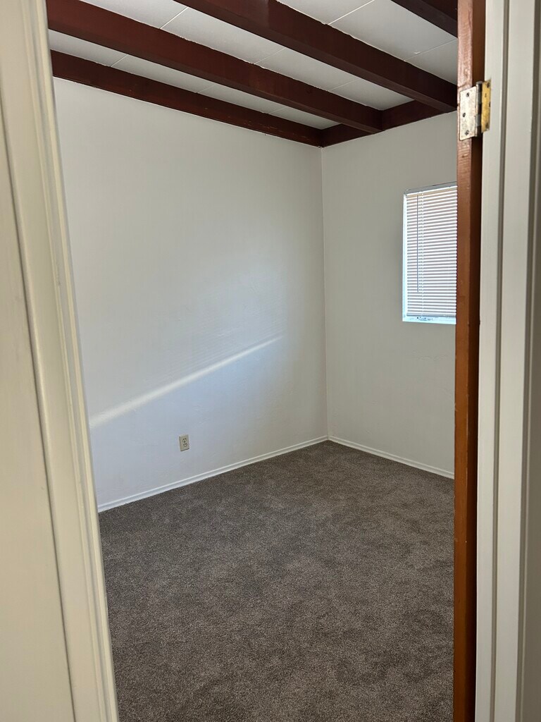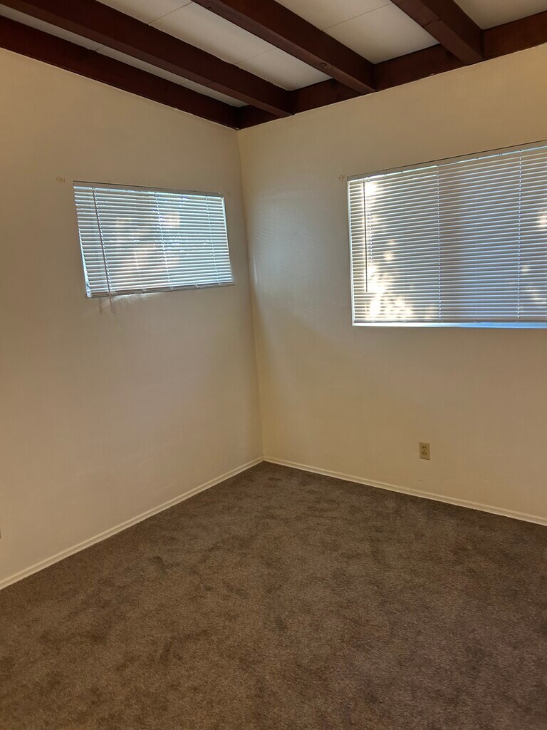 Spacious and freshly updated duplex unit in a prime central San Diego location close to shopping, dining, and easy freeway access. This home features brand new carpet, fresh interior paint, and a large living area with beautiful exposed wood beam ceilings that add warmth and character. The charming retro-tiled bathroom adds unique style, and the functional layout offers comfortable everyday living. Enjoy a private entrance with security gate and two dedicated parking spaces (garage plus driveway). New windows will be installed within 6–8 weeks, and a washer and dryer will be installed within the next couple of weeks. Centrally located and close to everything San Diego has to offer. Available now.