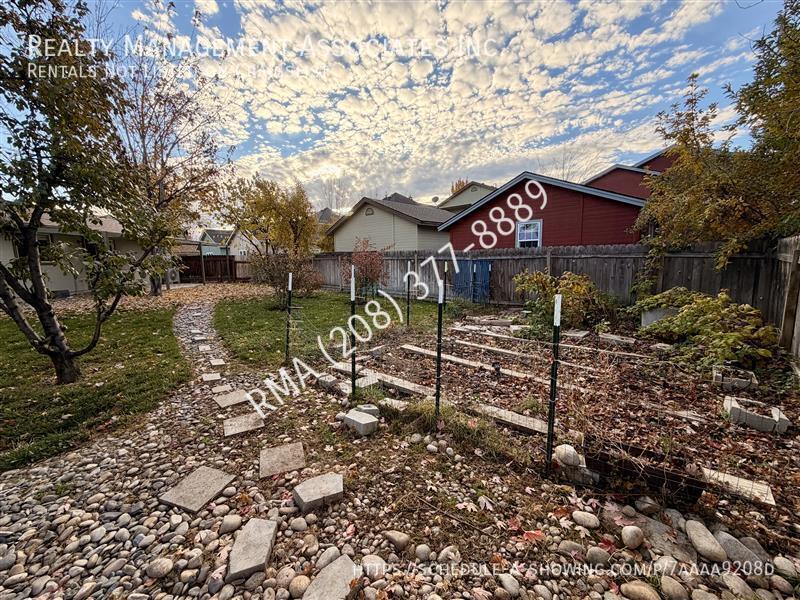 Cozy and beautifully maintained 3-bedroom, 2-bath home featuring fresh paint and luxury vinyl plank flooring throughout. The spacious living room includes a wood-burning fireplace—perfect for cozy winter nights! Updated kitchen with soft-close drawers, pantry, and pass-through to the dining area. Enjoy a desirable split floor plan: a comfortable primary suite with walk-in closet and private bath, plus two nicely sized bedrooms and a full hall bath. Large laundry room with ample shelving. Outside, relax on the covered patio overlooking a fenced garden area with blueberry bushes and an Italian plum tree. Detached oversized 1-car garage with great storage and large driveway for RV or trailer parking. Fantastic location next to the park—minutes to Downtown Boise, schools, shopping, and dining! Don’t miss this gem—schedule a showing today! 12-18 month lease and Property Liability Insurance Required. Pets are negotiable. No more than 2 pets, 50 lbs. or less. $750.00 pet deposit for one animal ($200.00 non-refundable) $1,000.00 deposit for two animals ($200.00 non-refundable). $50.00 pet rent charged each month for each pet, in addition to the monthly rent. Please see our pet policy here: Tenant is responsible for all utilities. An $80.00 flat fee is paid each month in addition to rent for the sewer and trash. Section 8/Housing Vouchers will not be considered for this rental