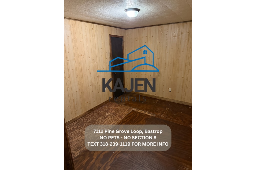 -Text "viewing instructions 7112 Pine Grove Loop" We will then send you the instructions to do a self showing. -No Section 8 -No Pets -No rent to own -No smoking inside -Rent is $825.00 -Deposit is $700.00 -Income will be verified on each tenant. -Central Heat and AC. -Located at 7112 Pine Grove Loop Rd Bastrop 71220 -Includes stove. -3 bedroom 2 bath home. -You pay utilities (water, gas, electric, trash, Lawncare) -$50 application fee per adult.