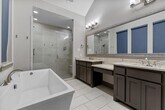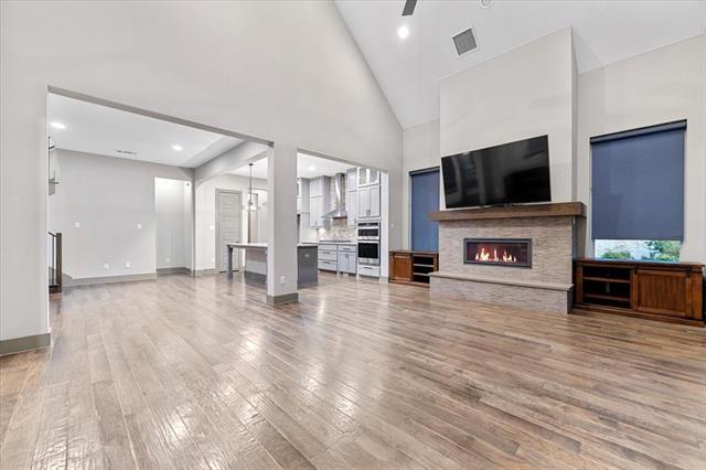This 3-bed 3.5-bath house is the one!!! It's loaded with upgrades like vaulted ceilings, 1st floor wood-like flooring throughout, painted cabinets, electronic fireplace, powered window shades, wall mounted 80-inch TV. The kitchen features granite countertops, double stacked cabinets, oversized island with seating, dishwasher, disposal, microwave, gas stovetop, and electric oven. Whole house vacuum filtration and osmosis system. Office nook. Mud room. Utility with full sized washer and dryer included. Elegant master bath with free standing tub, quartz counters, extra-large his & her shower heads with bench, dual sinks plus vanity. The gated community amenities include parks, playgrounds, hike bike paths & access to golf with a membership. Highly desirable Frisco ISD. This house is perfect for entertaining friends and family! It is conveniently located to major roadways with access to schools, shopping, restaurants, entertainment, etc.