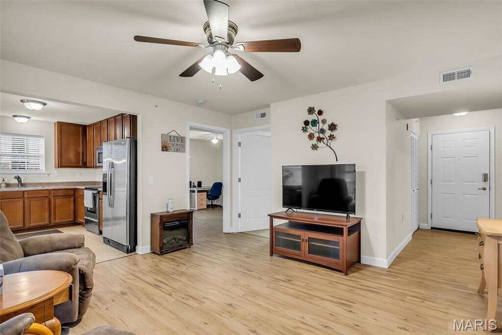 7114 Welsh Drive | Lake St. Louis, MO 63367 Saratoga Condominiums Spacious and well-maintained ground-level, two-bedroom, two-bath condominium offering no-step entry and 1,085 square feet of comfortable living space. This apartment-style unit features in-unit laundry, an assigned parking space, and newer vinyl plank flooring throughout most of the home. Enjoy relaxing outdoors on your private patio, complete with additional storage. The large eat-in kitchen includes 42” maple cabinetry, stainless steel appliances (electric range, dishwasher, built-in microwave, and refrigerator), and an oversized double-wide pantry. The primary bedroom suite offers a private bath and a generous 9’ x 5’ walk-in closet. The second bedroom provides direct access to a full bathroom, making it ideal for guests or roommates. Additional features include: Full-size washer and dryer included Electric furnace and central air conditioning Water, sewer, and trash included (tenant pays electric only) Conveniently located near Highway 40, Highway 70, Highway 94, and the Page Extension, with easy access to shopping, grocery stores, and entertainment. Rental Terms: $1,475 first month’s rent $1,475 security deposit (both due upon acceptance) One-year lease minimum Pets negotiable with possible pet deposit (based on size and number) Available for occupancy almost immediately Strictly for rent — not available for lease purchase or option to buy School District: Liberty High School, Frontier Middle School, Prairie View Elementary Directions: Highway 40 to west on N, right on Welsh. Building address posted.