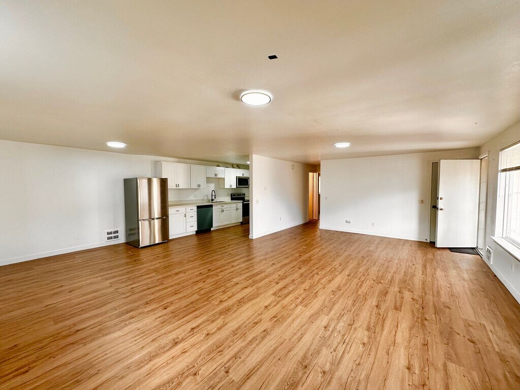This spacious duplex unit offers a full range of amenities designed for a comfortable and convenient lifestyle. The large living room is perfect for entertaining or unwinding after a long day. The full kitchen, equipped with modern appliances, is ready for all your culinary adventures. Each of the three bedrooms is generously sized, ensuring plenty of personal space. The unit also includes an in-unit washer and dryer for added convenience. Hardwood flooring throughout adds a touch of elegance while remaining easy to maintain. Additionally, on-site parking is available, providing an extra layer of convenience.