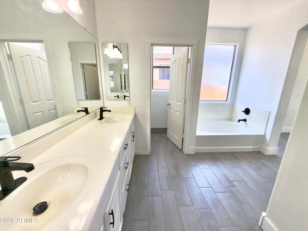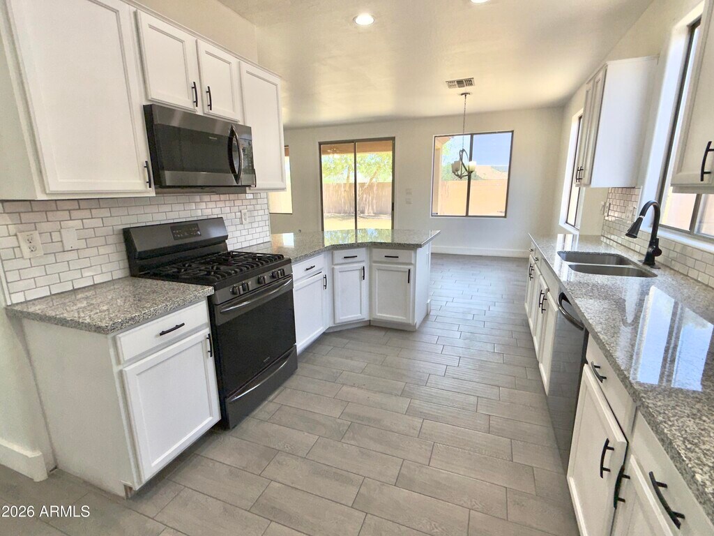 Welcome to this spacious 4 bedroom,2 bathroom home located in the highly sought-after Laveen Meadows subdivision. Built in 2006,this home offers over 2000 square feet of living space with an open floor plan,high ceilings,and abundant natural light. The kitchen is equipped with modern appliances and plenty of storage space,and the living room is perfect for relaxing or entertaining. The bedrooms are generously sized,and the master suite features a walk-in closet and an en-suite bathroom with double sinks,a separate shower,and a soaking tub. The backyard is a blank canvas for you to create your own private oasis,whether you want to add a pool,garden,or outdoor living space. Brand new floors,counters,and paint throughout.